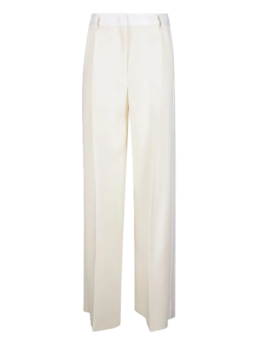 Pantaloni smoking con design a inserti, passanti, tasche laterali con cuciture, tasche a filetto sul retro, chiusura frontale nascosta