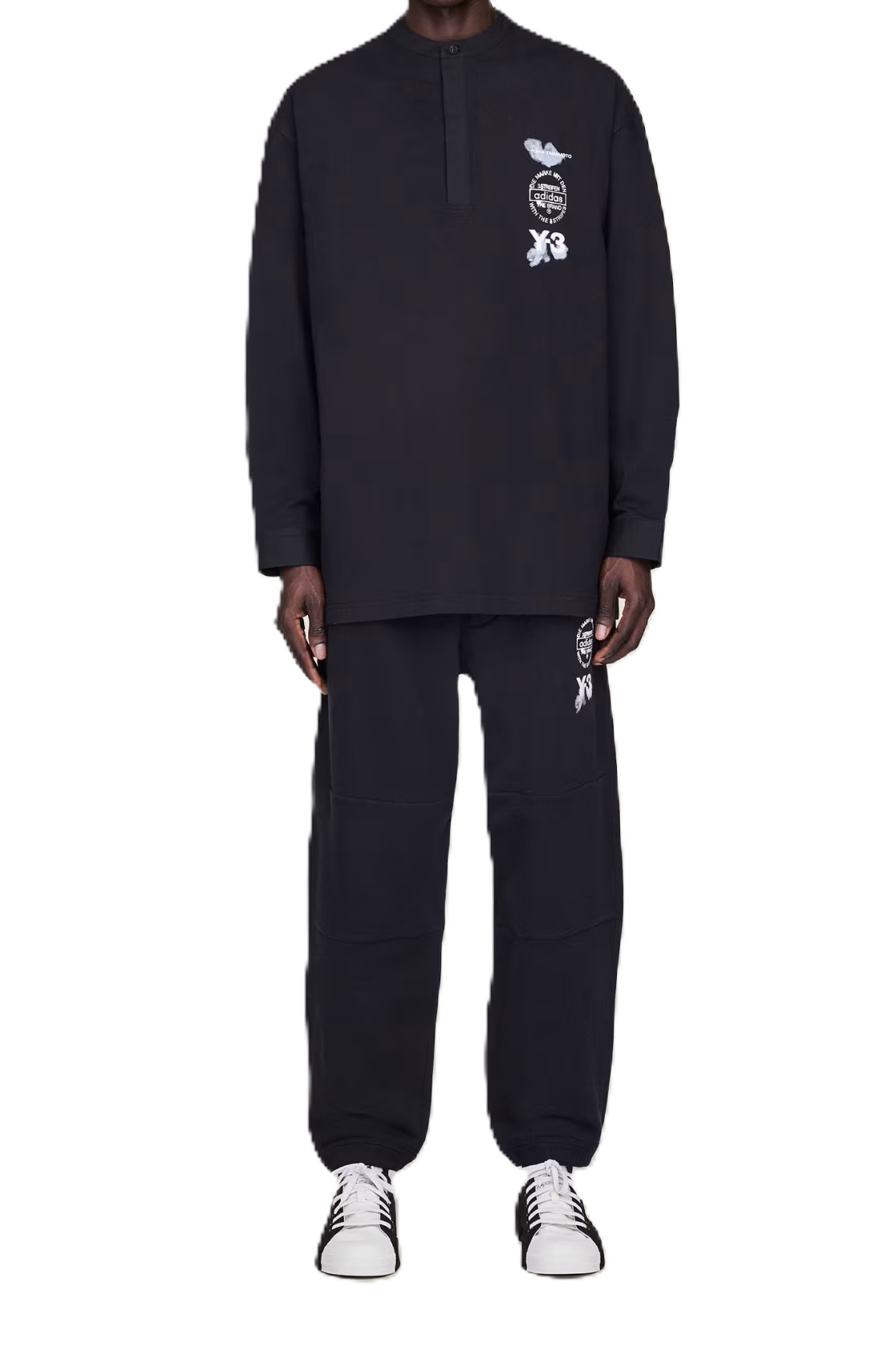 Y-3 reinterpreta una silhouette sportiva attraverso una lente fashion, e il risultato sono i pantaloni da tuta Y-3 Cuffed. Realizzati in cotone e dal taglio classico, questi pantaloni sono un elemento di spicco minimalista. I polsini elastici creano la forma e il logo rimarca lo spirito Y-3.