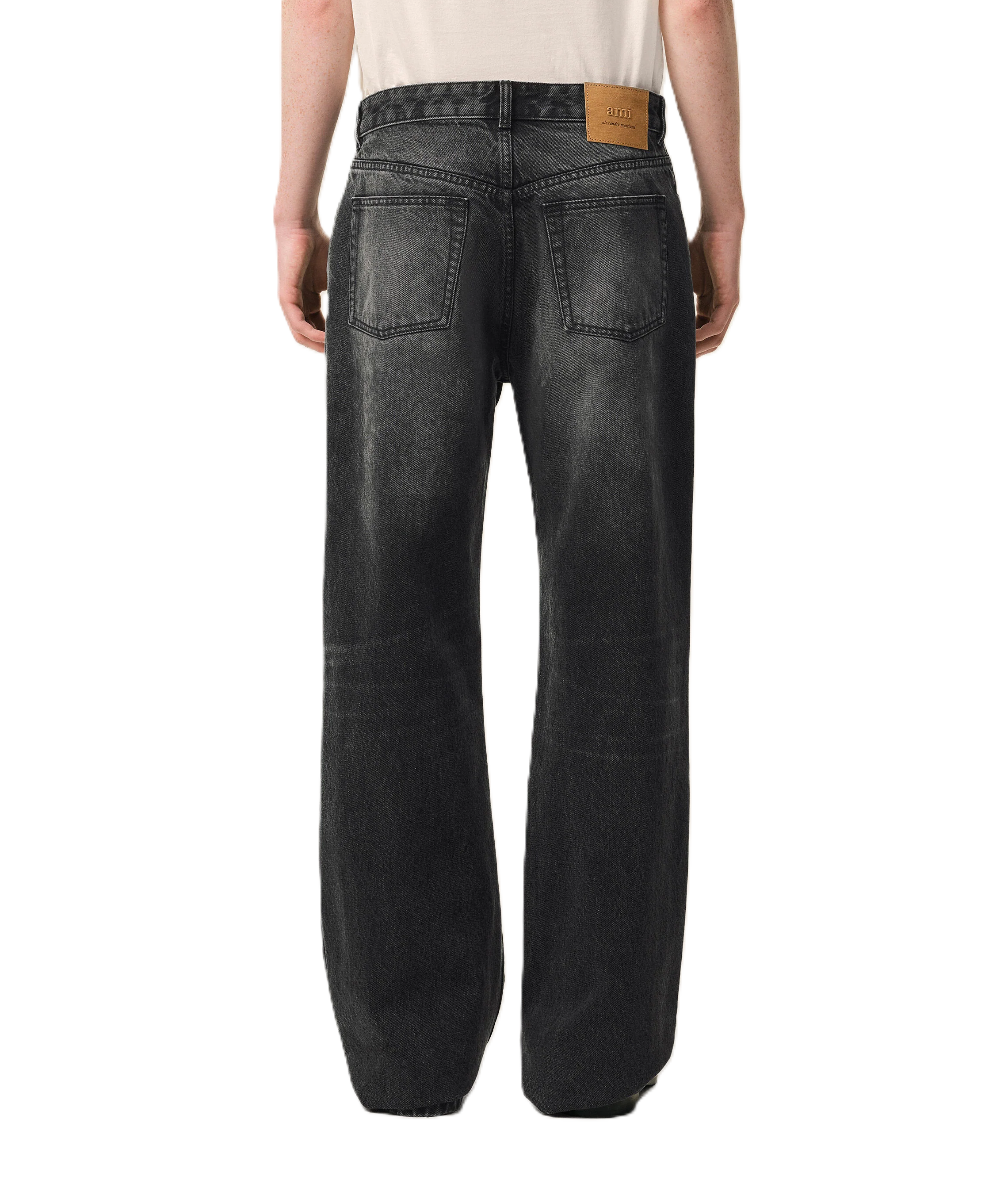 Ami Paris Jeans dal taglio ampio in denim nero effetto used.
