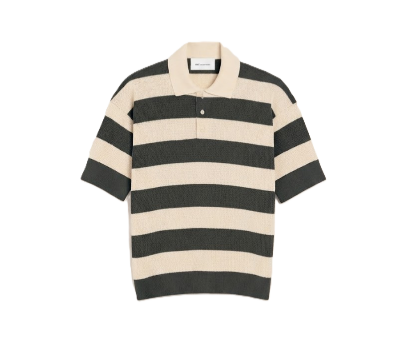Polo in maglia di cotone rigato ajouré.