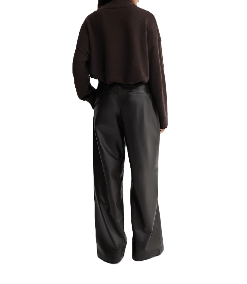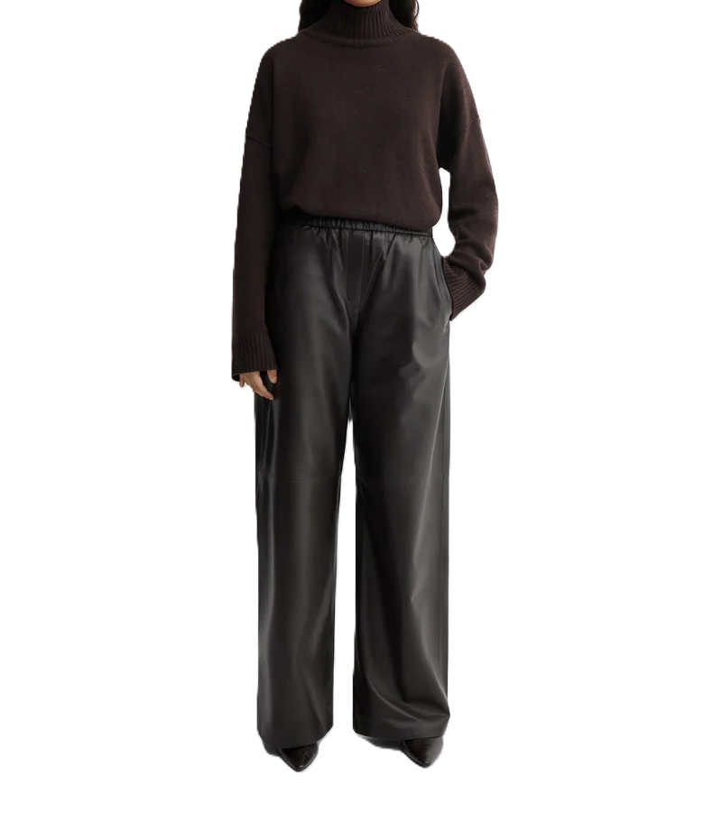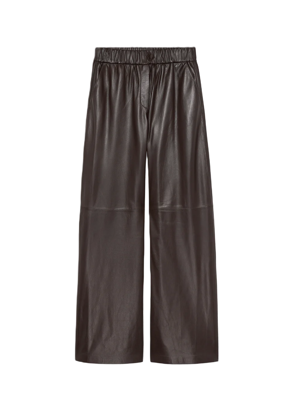 I pantaloni in pelle SOLIA sono l'espressione definitiva dell'eleganza moderna. Realizzati in pregiata pelle d'agnello al 100%, questi pantaloni presentano una vestibilità ampia che si adatta perfettamente. La morbida pelle dei pantaloni in pelle SOLIA aggiunge un tocco lussuoso, mentre la linea rilassata dona disinvoltura e raffinatezza a qualsiasi look.
