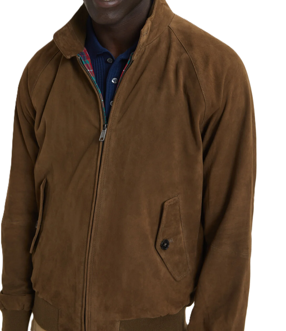 La giacca in camoscio, un must-have per ogni guardaroba. Il G9 Suede Authentic Fit è proprio un classico Harrington Jacket, ma realizzato in puro camoscio. Questo capo è diventato un vero e proprio staple la cui popolarità è cresciuta negli anni proprio per merito della sua versatilità, fino a diventare un'inconfondibile icona di stile. La fodera Fraser Tartan è in tessuto traspirante Coolmax®. La giacca presenta il classico colletto a due bottoni, le tasche laterali oblique, lo spallone con motivo ad ombrello, i polsini, la vita e il collo interno a coste.