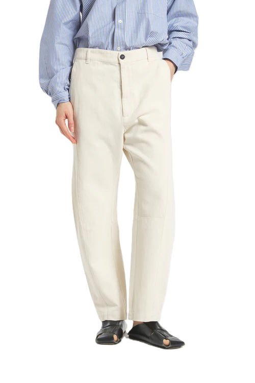 Pantaloni a gamba larga in velluto a coste di cotone e lino. Con tasche profonde a filetto e tasche posteriori applicate con carré, uniscono comfort e stile sobrio. Composizione: 78% cotone, 22% lino.