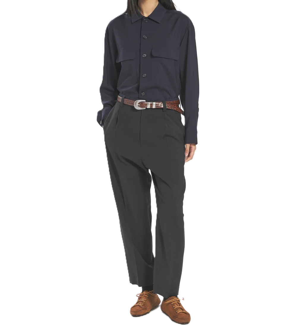I pantaloni Roxanne sono realizzati in leggera lana Tropival nell'iconico navy Barena, che ne esalta l'eleganza senza tempo pur mantenendo una silhouette casual. Il modello presenta doppie pinces sul davanti, per un aspetto raffinato. Armatura a tela - Grammatura: 230 gr/ml - Composizione: 100% Lana Vergine
