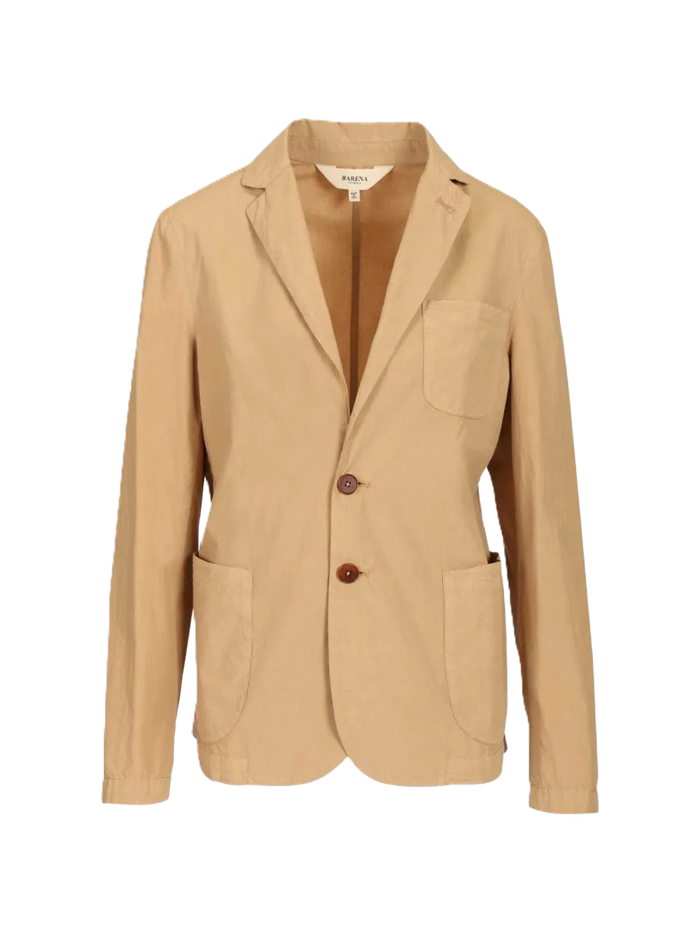 Blazer cachi, design con abbottonatura, taschino sul petto, tasche frontali con patta, revers classici