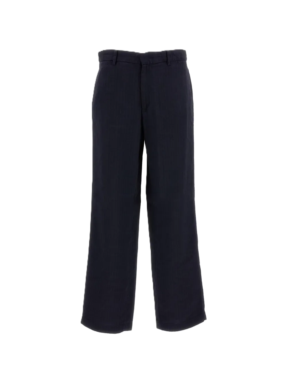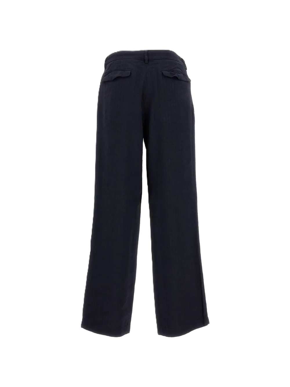 Pantaloni con motivo a spina di pesce blu navy, passanti per cintura, tasche posteriore con patta, chiusura con patta e zip nascosta
