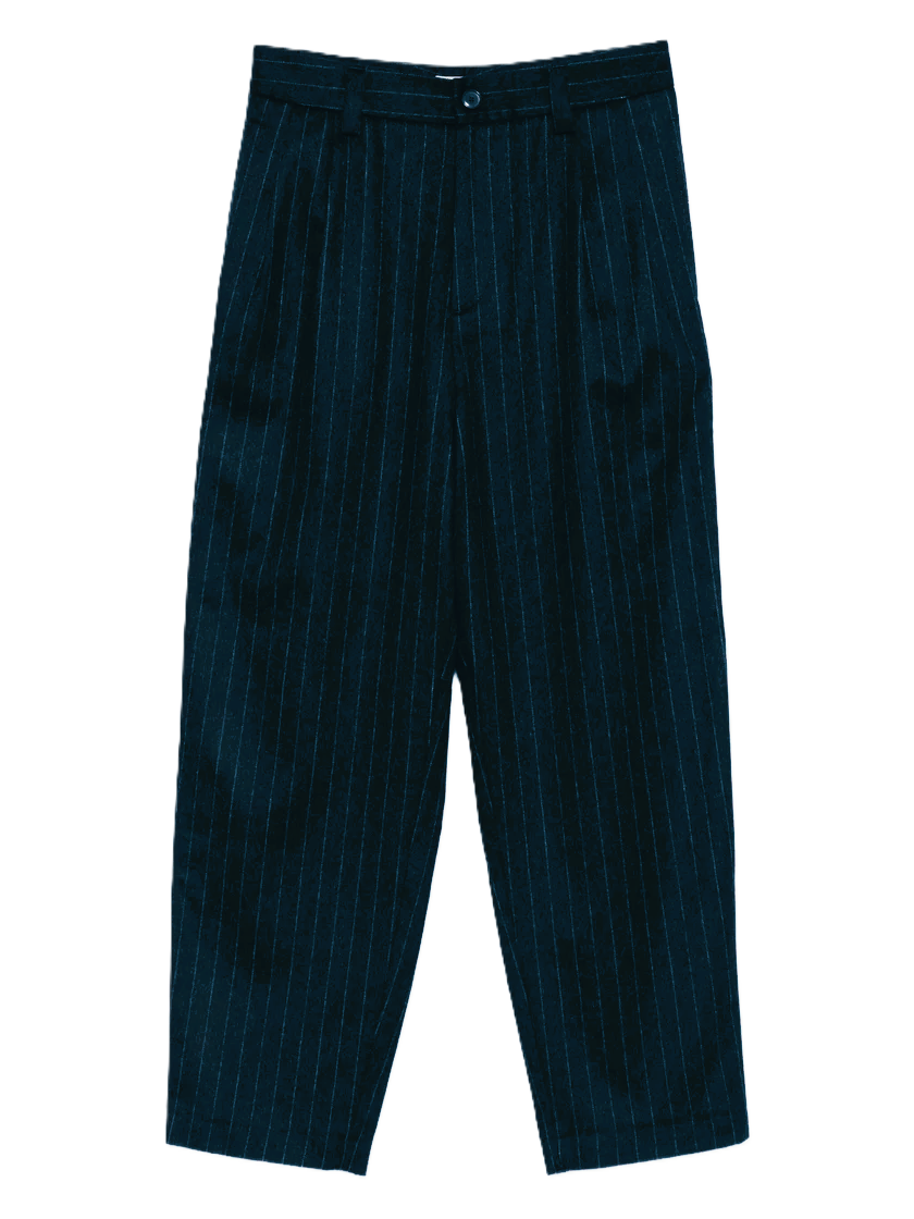 Pantalone da completo, acquistabile solo assieme alla sua giacca, chiusura frontale con bottoni plissettati, motivo a righe navy
