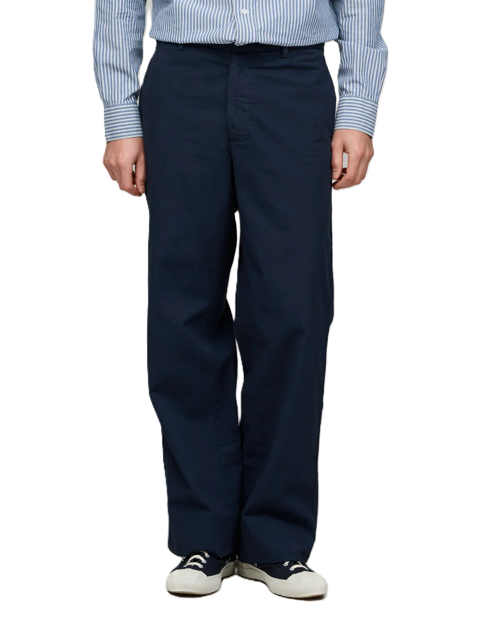 Ispirati all'abbigliamento nautico tradizionale, questi pantaloni da marinaio sono un esempio di semplicità funzionale. Realizzati in cotone stropicciato naturale, un tessuto che offre una particolare qualità tattile e una finitura morbida e strutturata fin dal primo utilizzo. Il materiale è traspirante ma al contempo consistente, il che li rende il compagno ideale per le giornate di transizione in cui comfort e praticità sono ugualmente importanti. Made in Italy in 100% Cotone