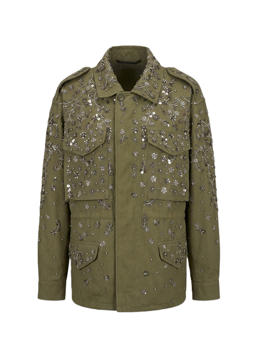 Giacca Sahariana canvas strass Benedetta Novi Lucia Bright sage