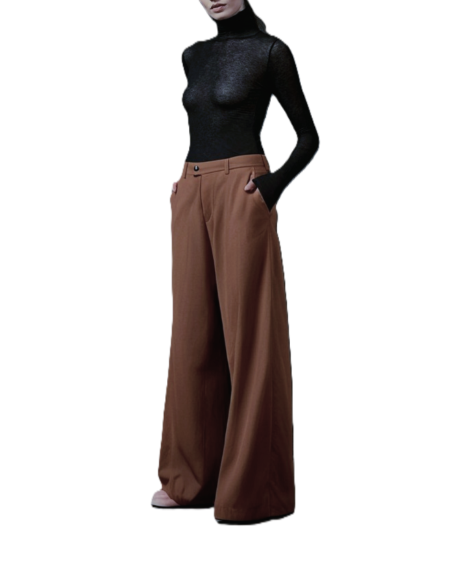 Pantalone A Palazzo. Chiusura Zip e bottone. Tasche Alla Francese. Vestibilita' Regular.