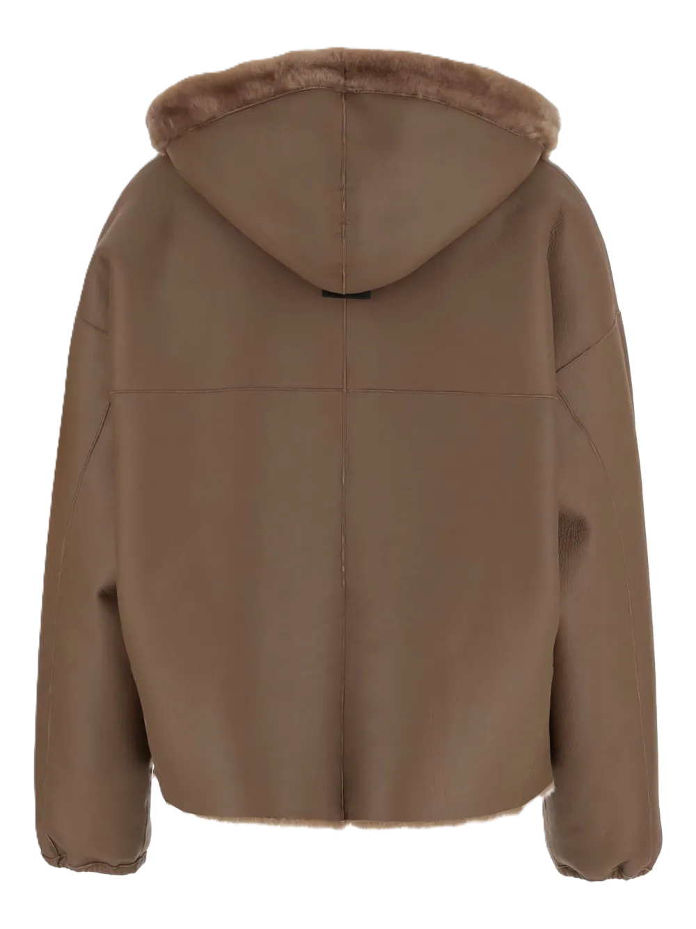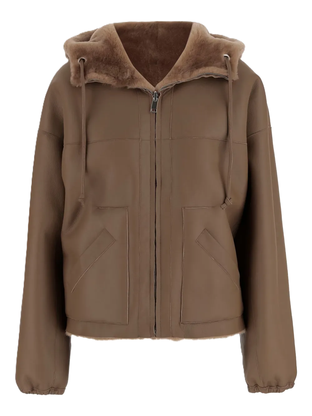 Giacca pelliccia con cappuccio regolabile con lacci, maniche lunghe, chiusura zip, tasche laterali, fodera in nappa.