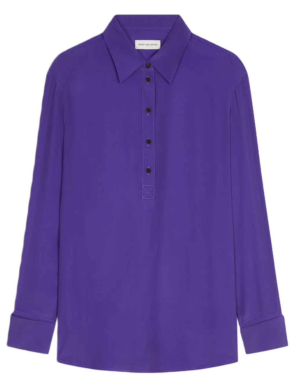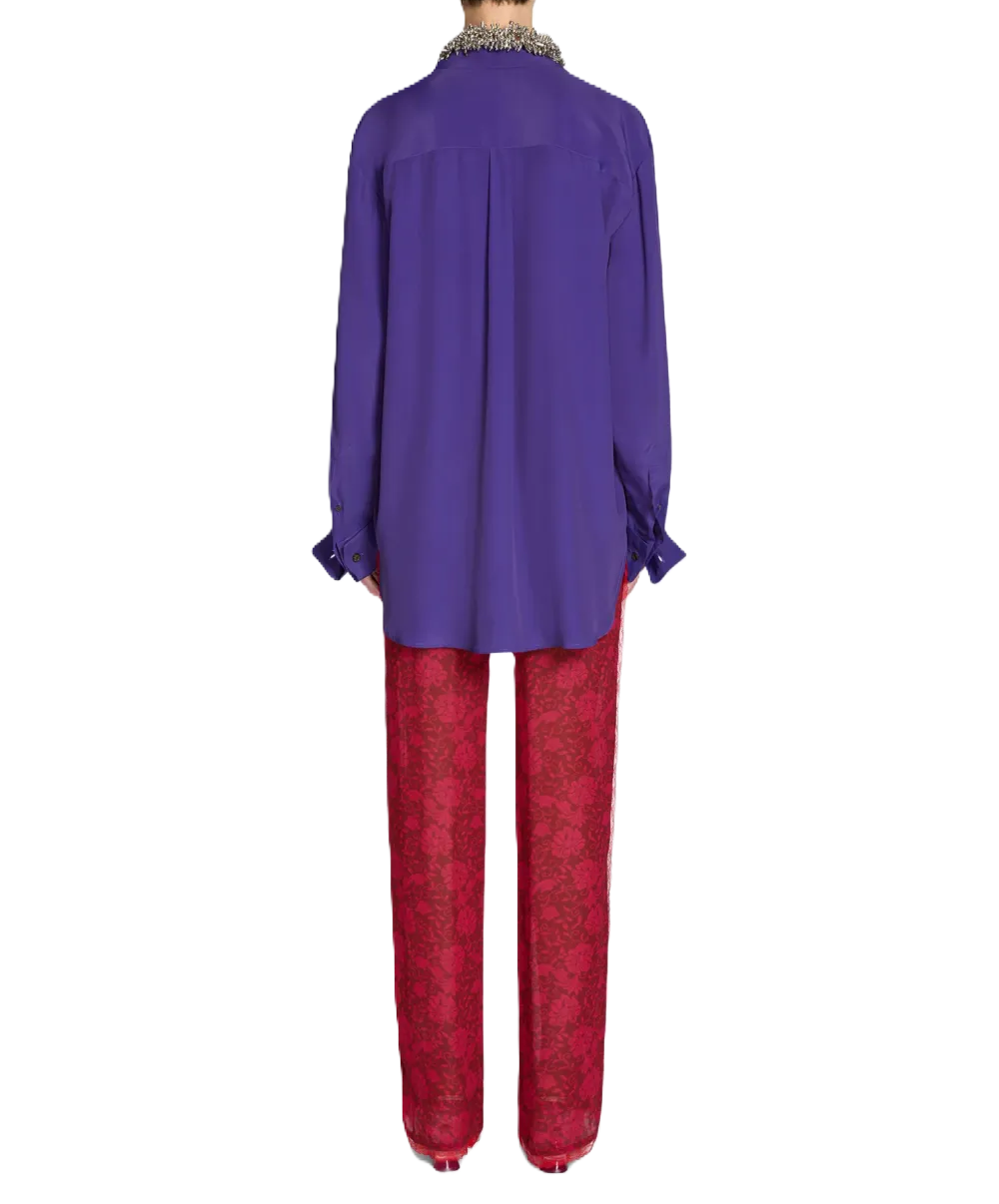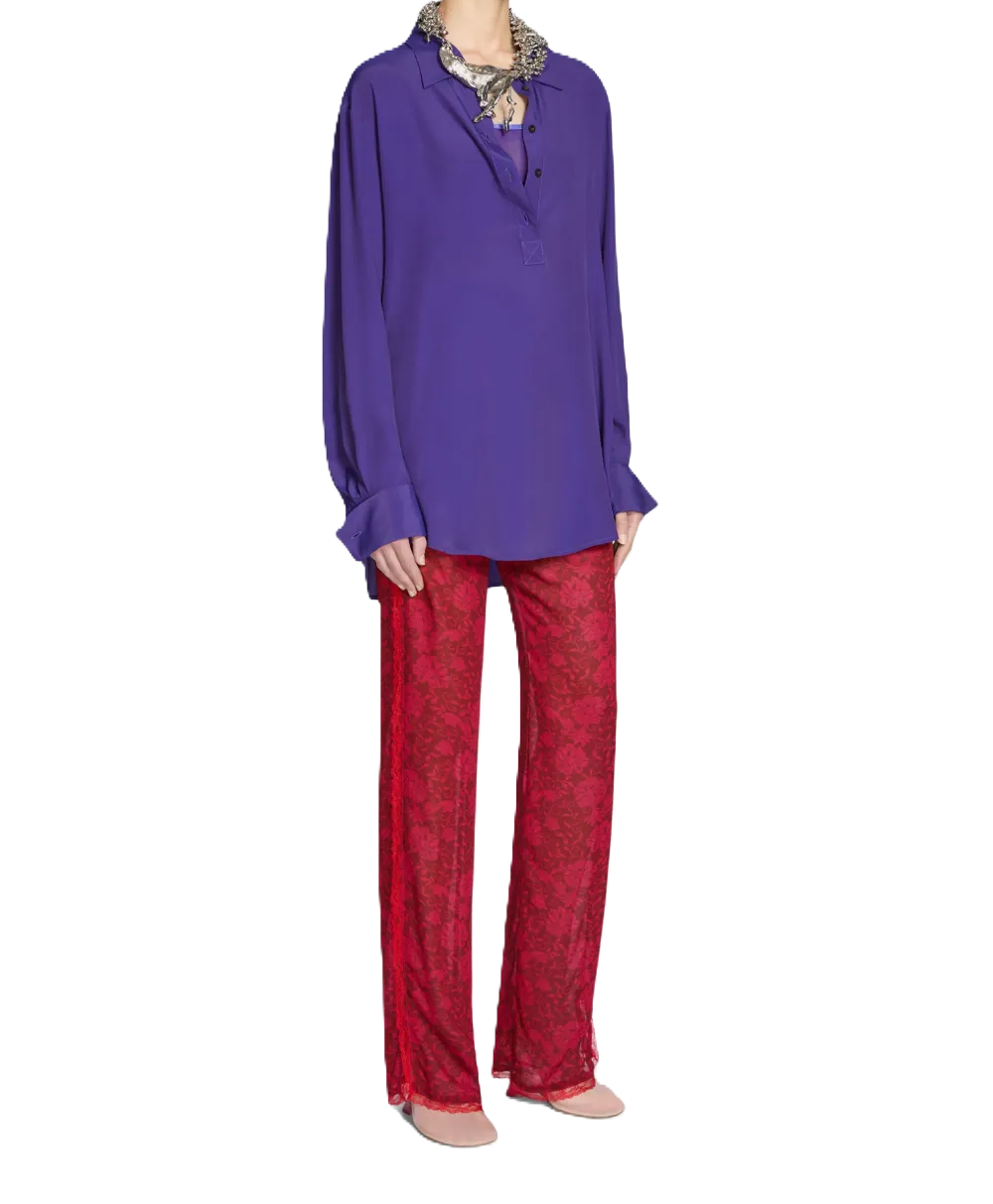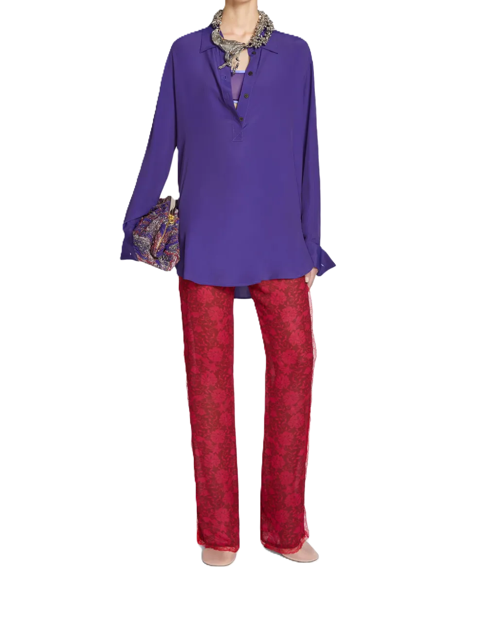 Camicia ampia con scollo a polo e doppi polsini, in creponne di seta acetato.