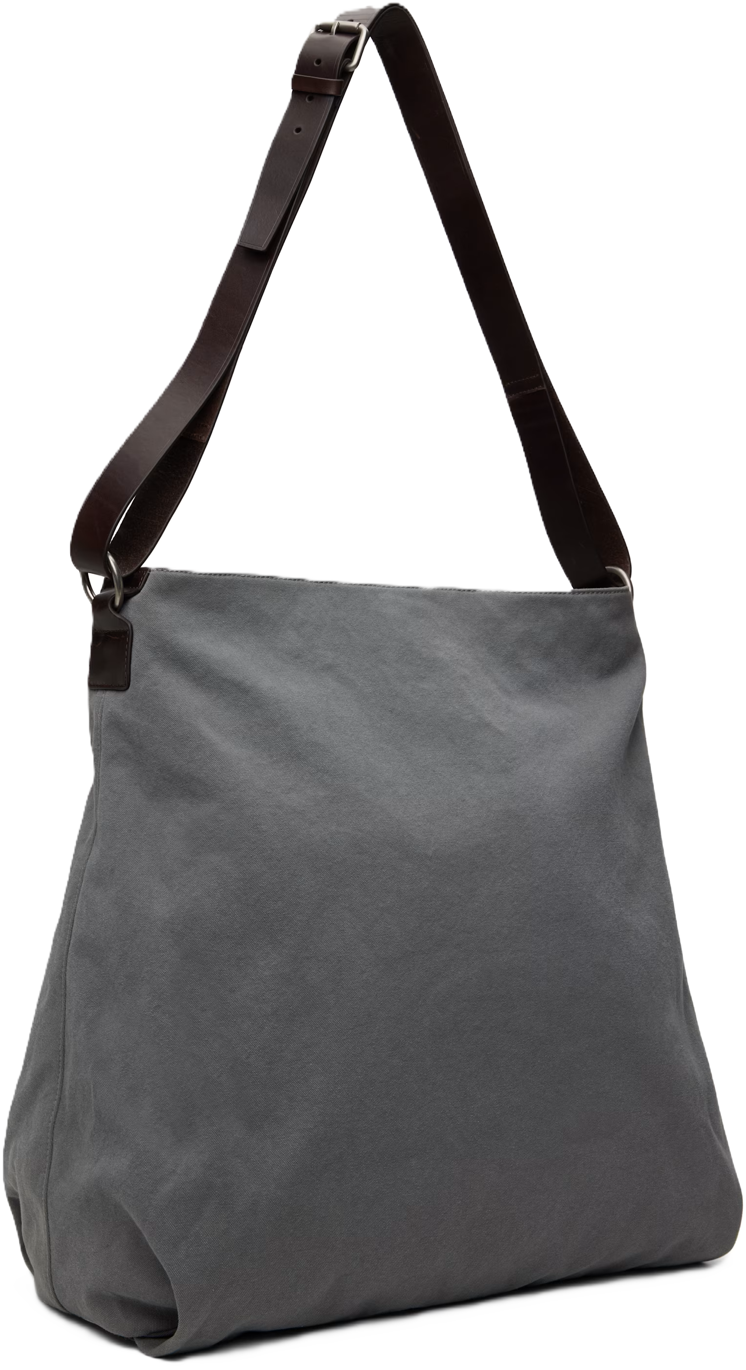 Borsa tote in tela color grigio, chiusura magnetica nascosta, due manici regolabili, scomparto unico, tasca interna con zip.
