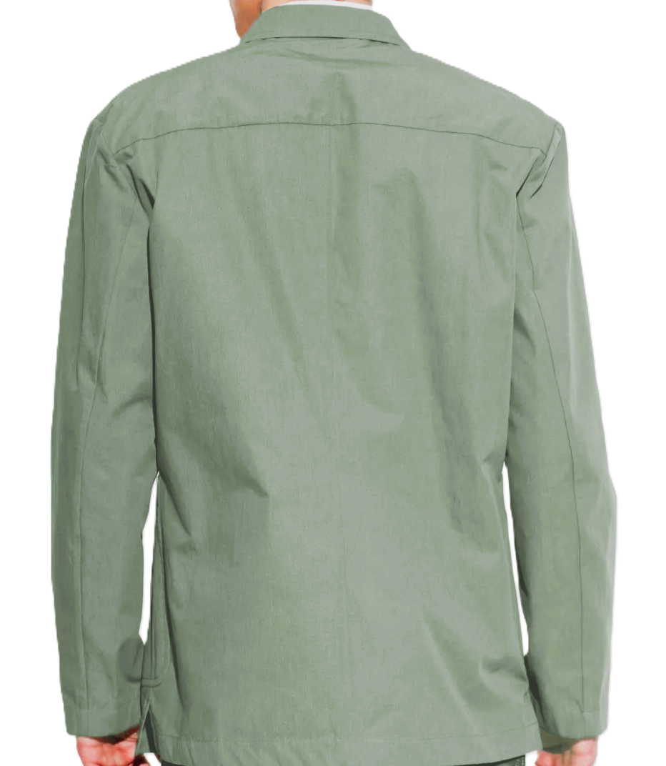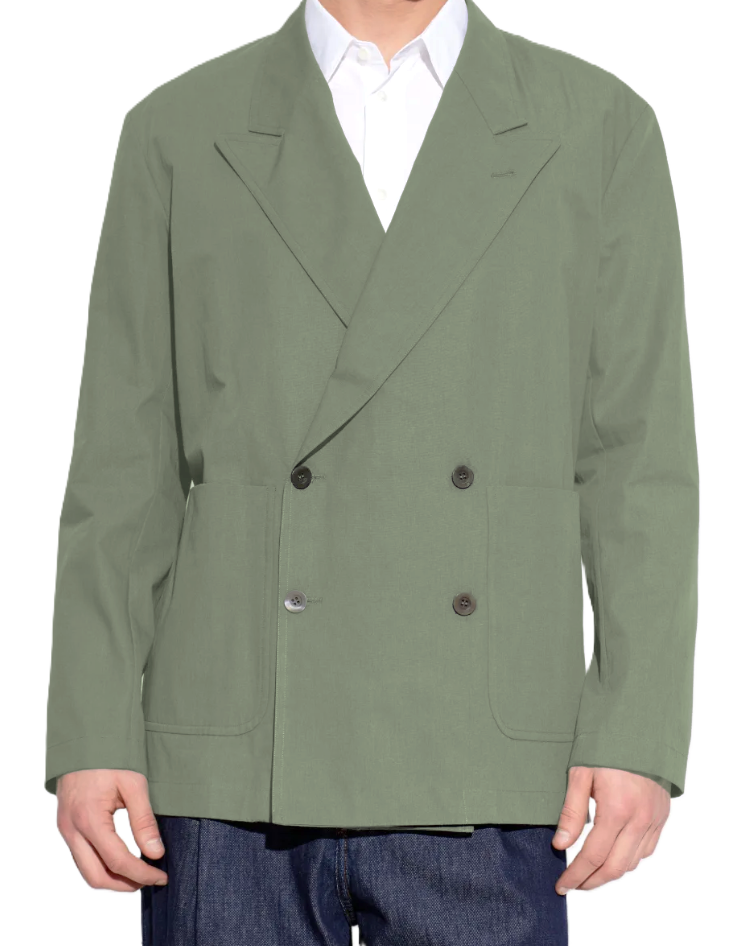 doppiopetto in cotone verde pistacchio, chiusura con bottoni, revers a lancia, tasche applicate