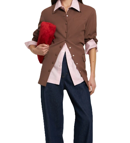 Giacca Benny in gabardina di lana in taupe, abbottonatura frontale, due tasche frontali.
