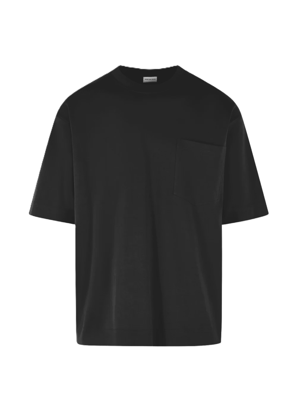 La T-shirt con taschino di Dries Van Noten è una sofisticata fusione di estetica minimalista e lavorazione artigianale d'eccezione. Realizzata in un nero intenso ed elegante, la silhouette classica e leggermente rilassata mette in risalto le finiture raffinate e la meticolosa attenzione ai dettagli.