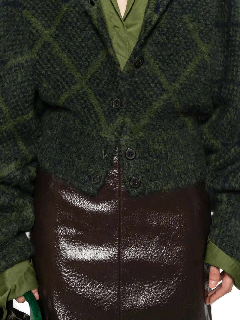 Maglione collo alto modello Tifna, chiusura con bottoni frontali, motivo a rombi navy blu e green