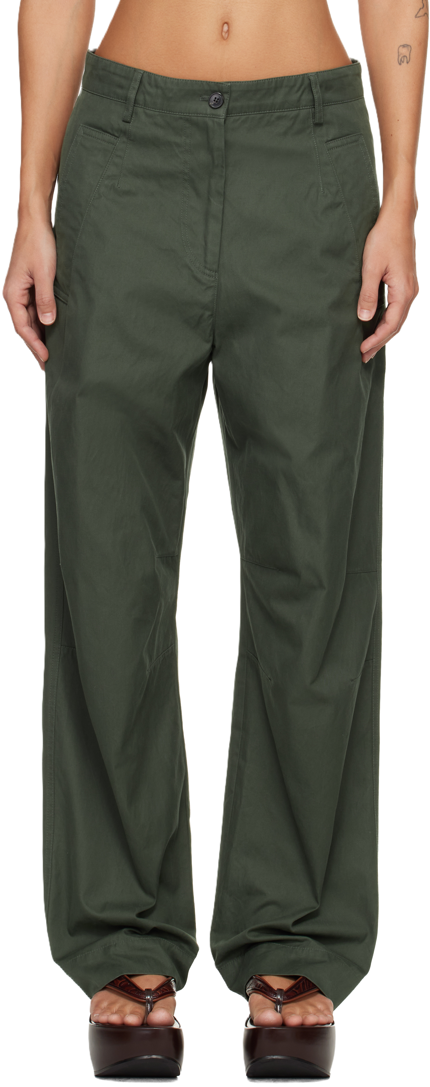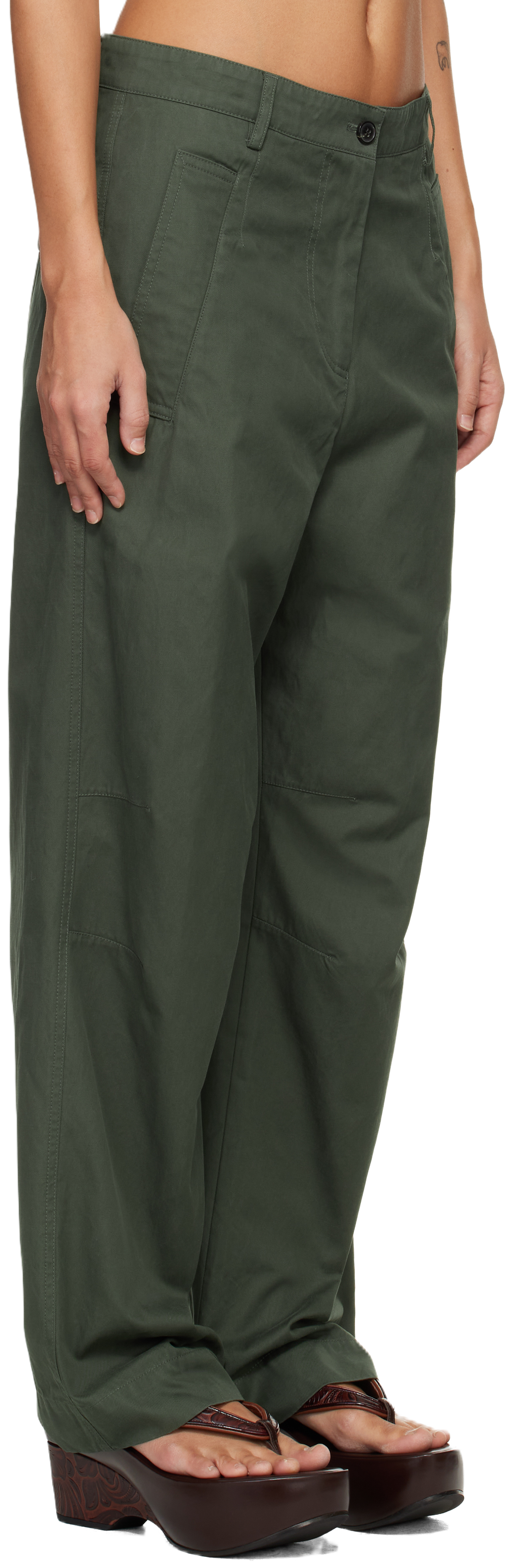 Pantalone color verde bottiglia, cuciture in tinta, gamba larga