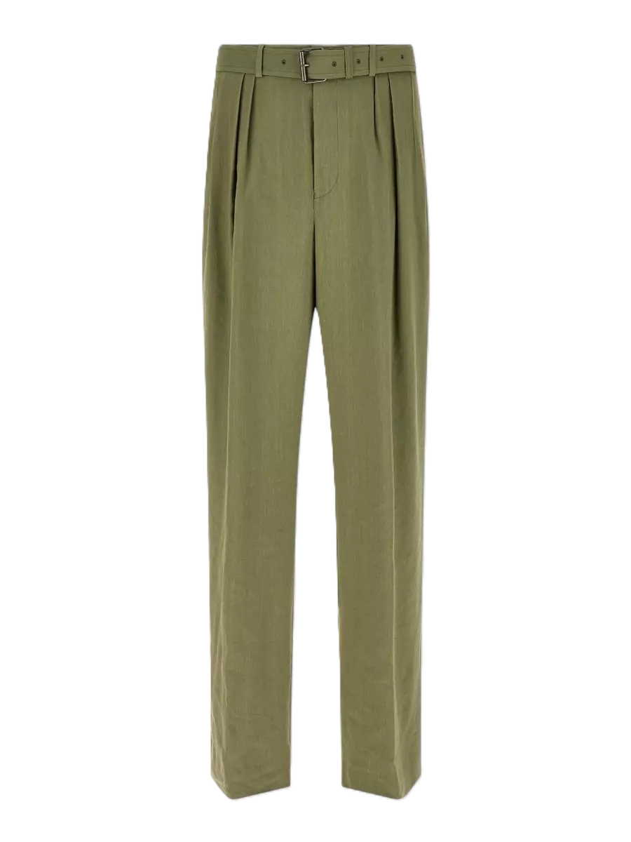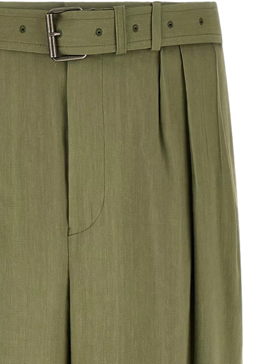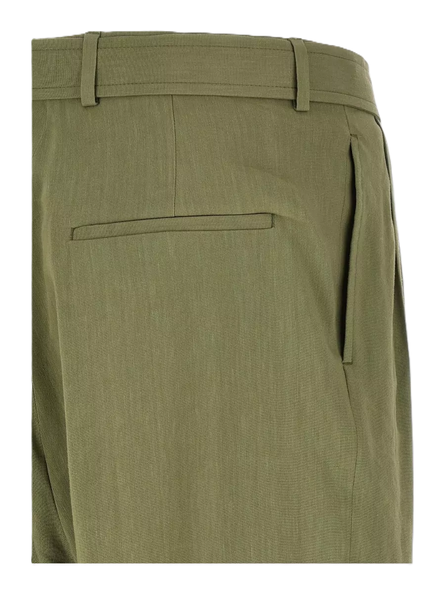 Pantalone con tasche posteriori a filetto, color verde pistacchio, piega stirata