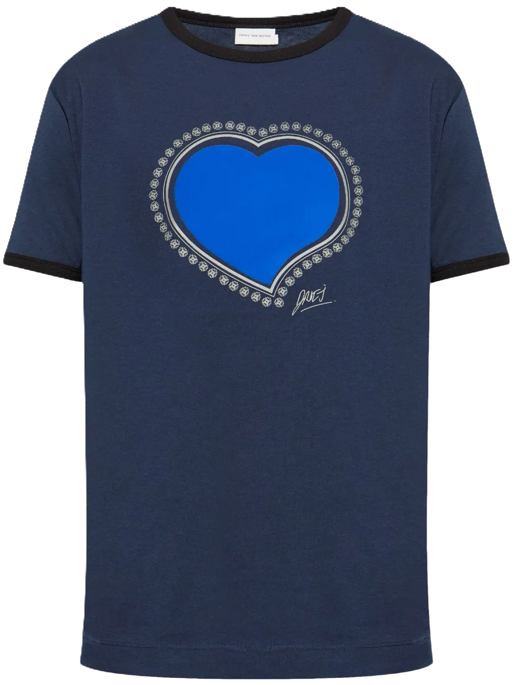 T-shirt stampa cuore by Dries Van Noten, in cotone color navy.