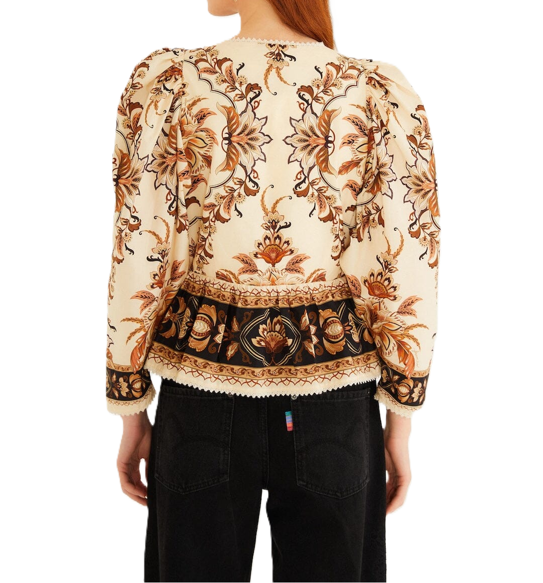 Blusa in cotone biologico con maniche a sbuffo in pizzo Farm Rio