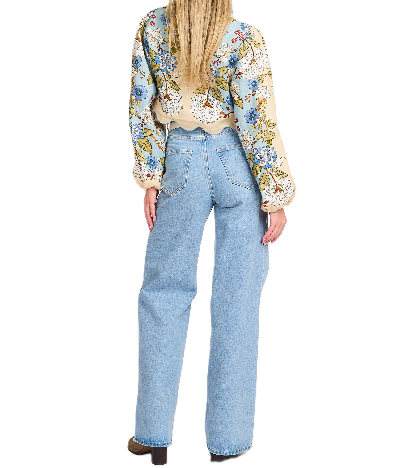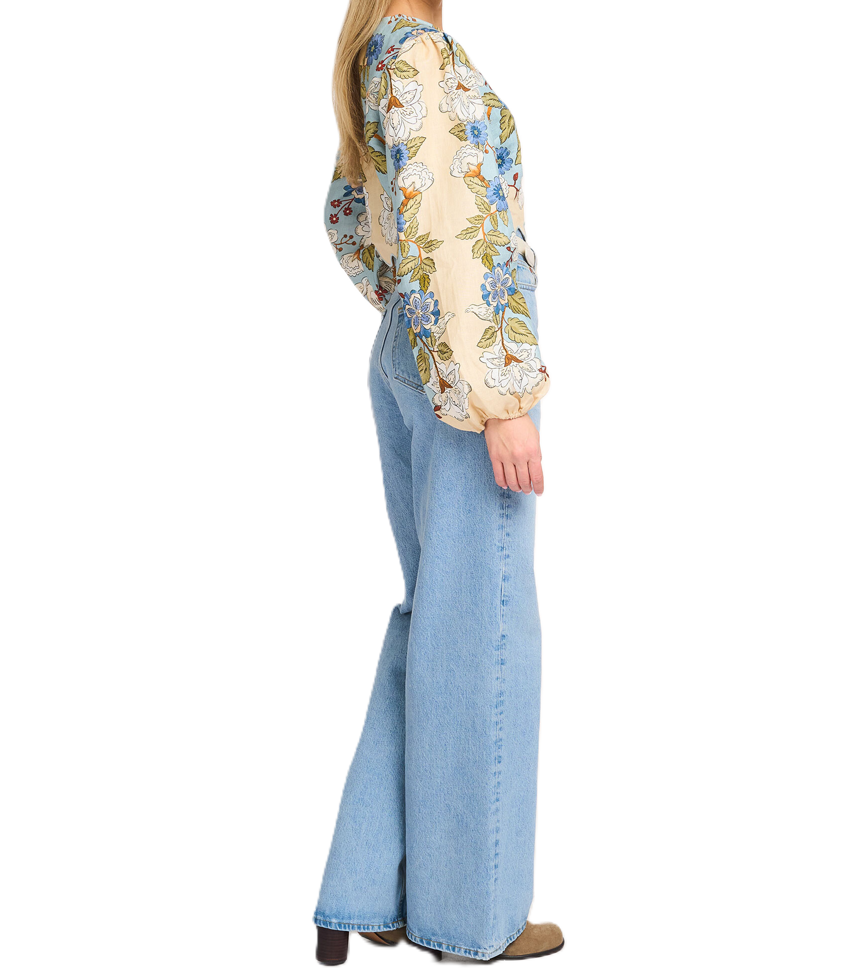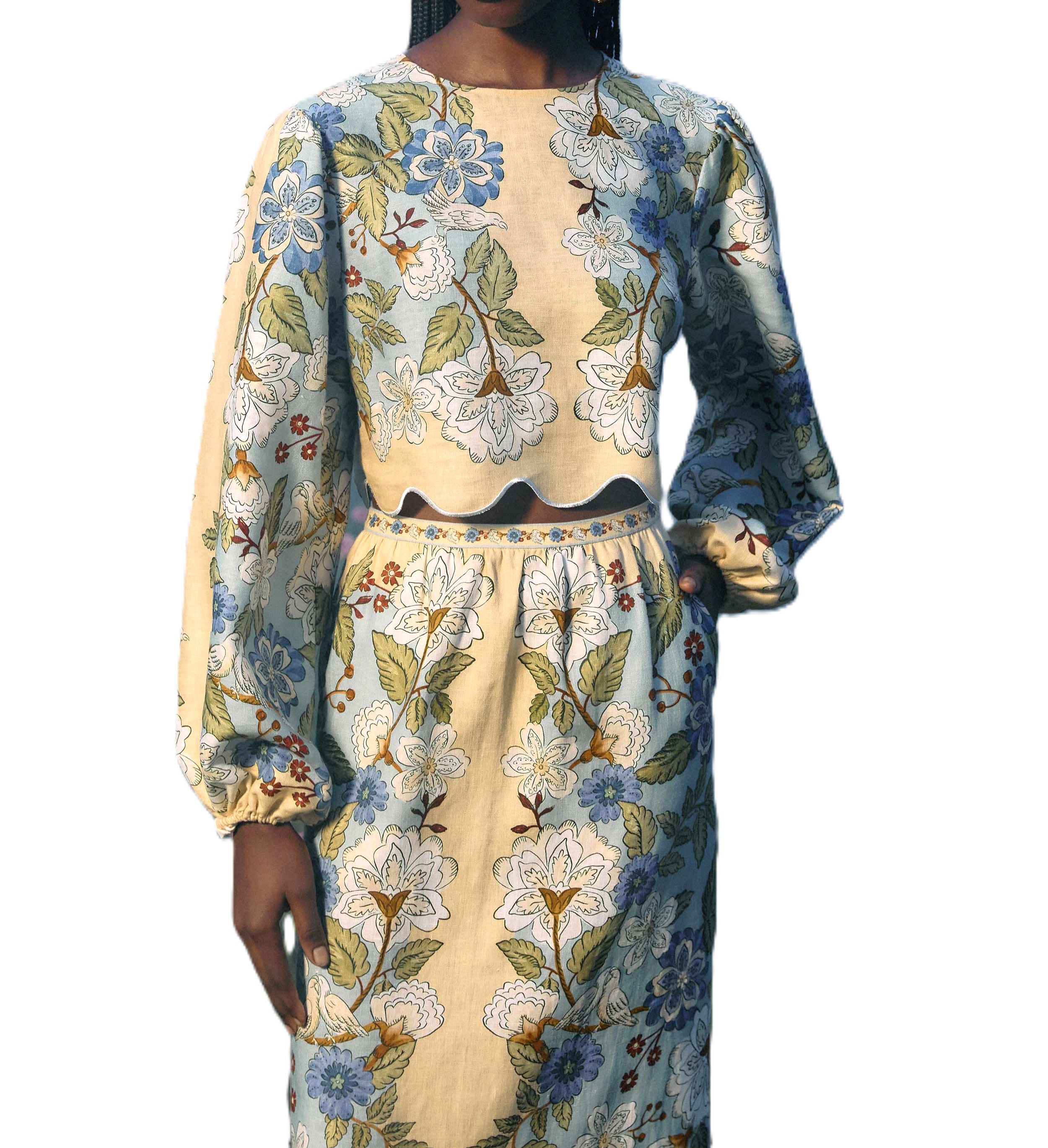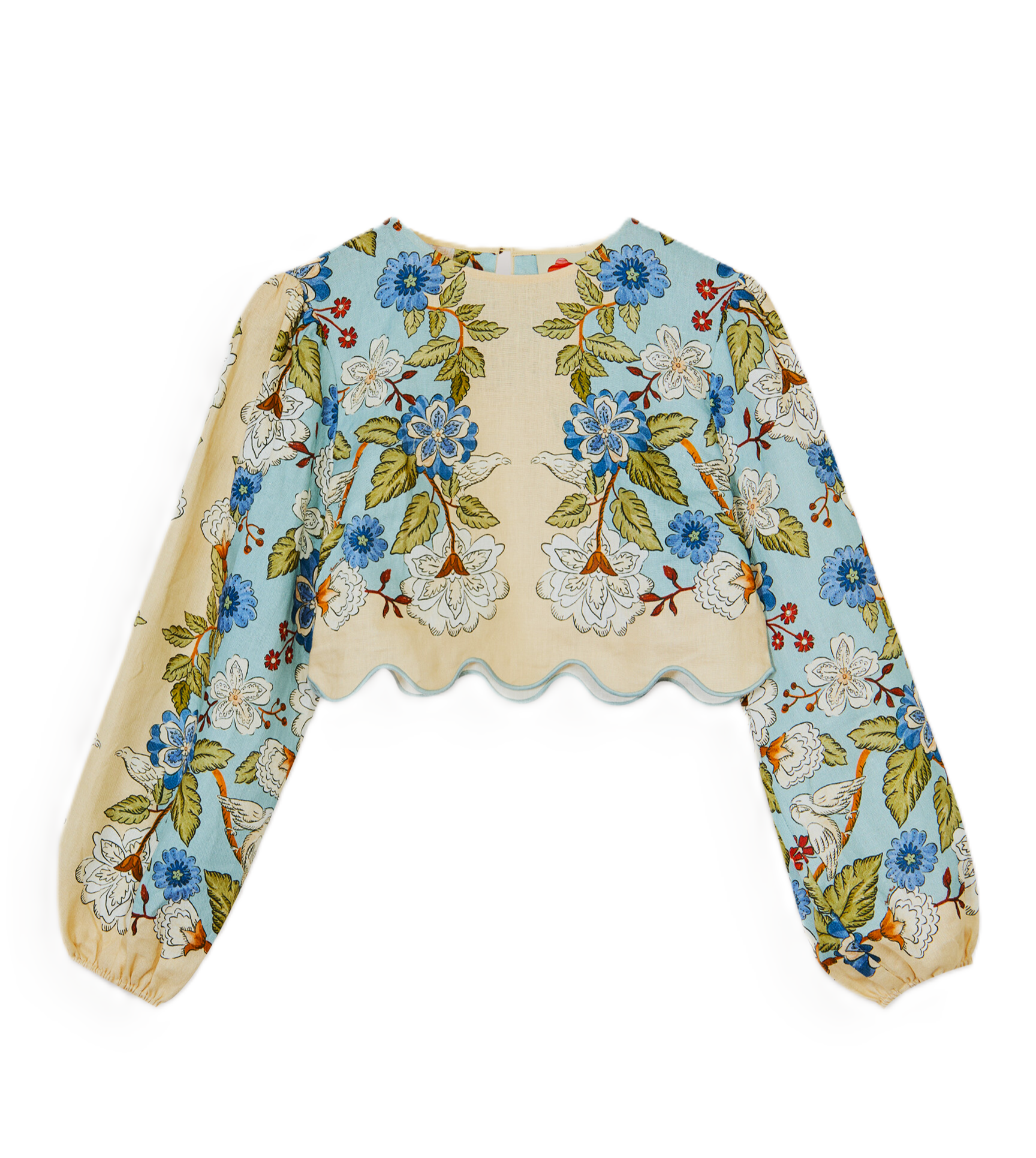 Blusa camicetta cropped con stampa all over su base beige/cream