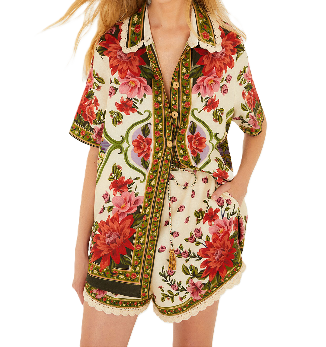 Shorts Farm Rio realizzati in tessuto sottile e poco flessibile. Modello realizzato in materiale leggero e traspirante con alta percentuale di lino, larghi nella zona dei fianchi e delle cosce.