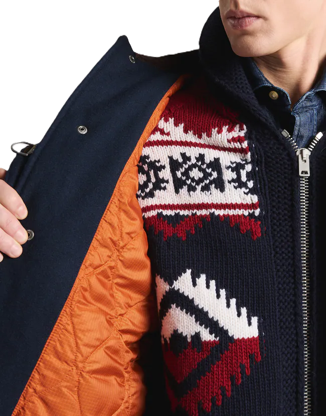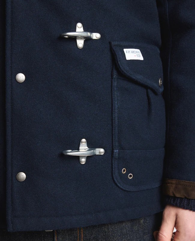 Dotata di maxi tasche con patta e automatici e un taschino interno, ha una doppia chiusura con automatici nascosti. Completa il modello l'etichetta Fay Archive cucita sulla tasca sinistra.