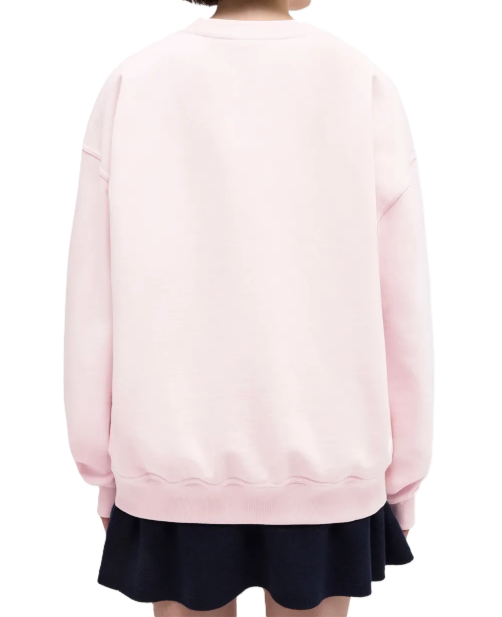 Felpa rosa chiaro con stampa grafica, girocollo, maniche lunghe, orlo e polsini a coste