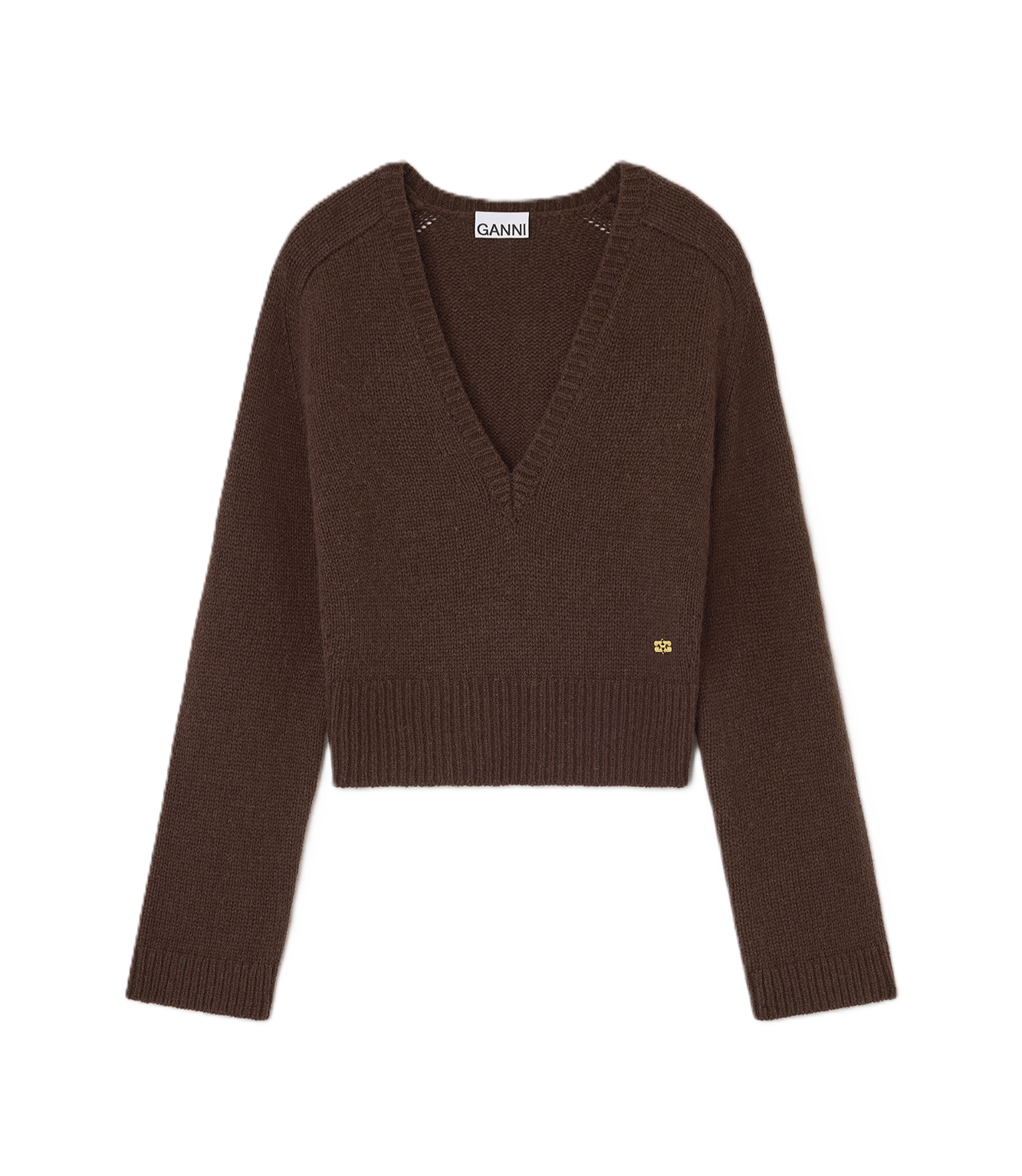 Shaved Chocolate Brown V-neck Jumper Ganni