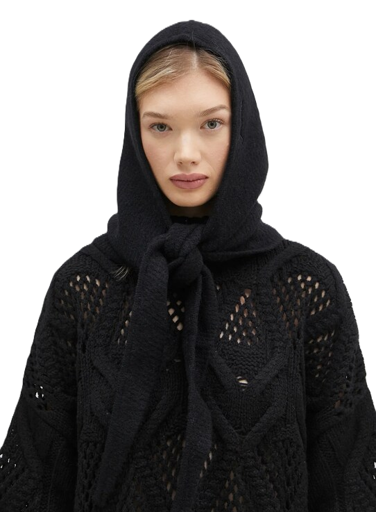Questo passamontagna è realizzato in un morbido misto di alpaca e lana merino. È realizzato in tessuto a coste e si chiude con due lacci sovrapposti sul davanti.