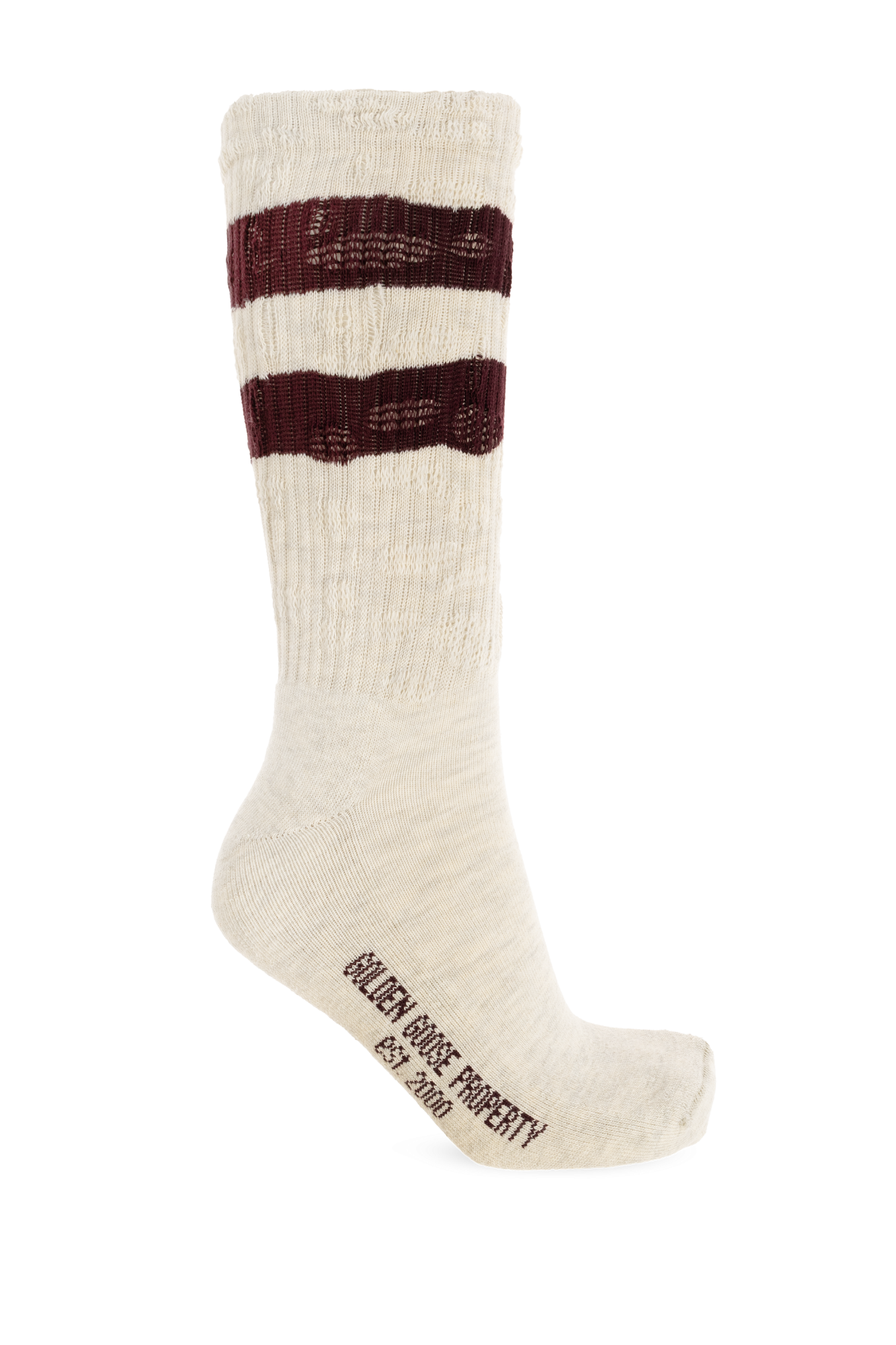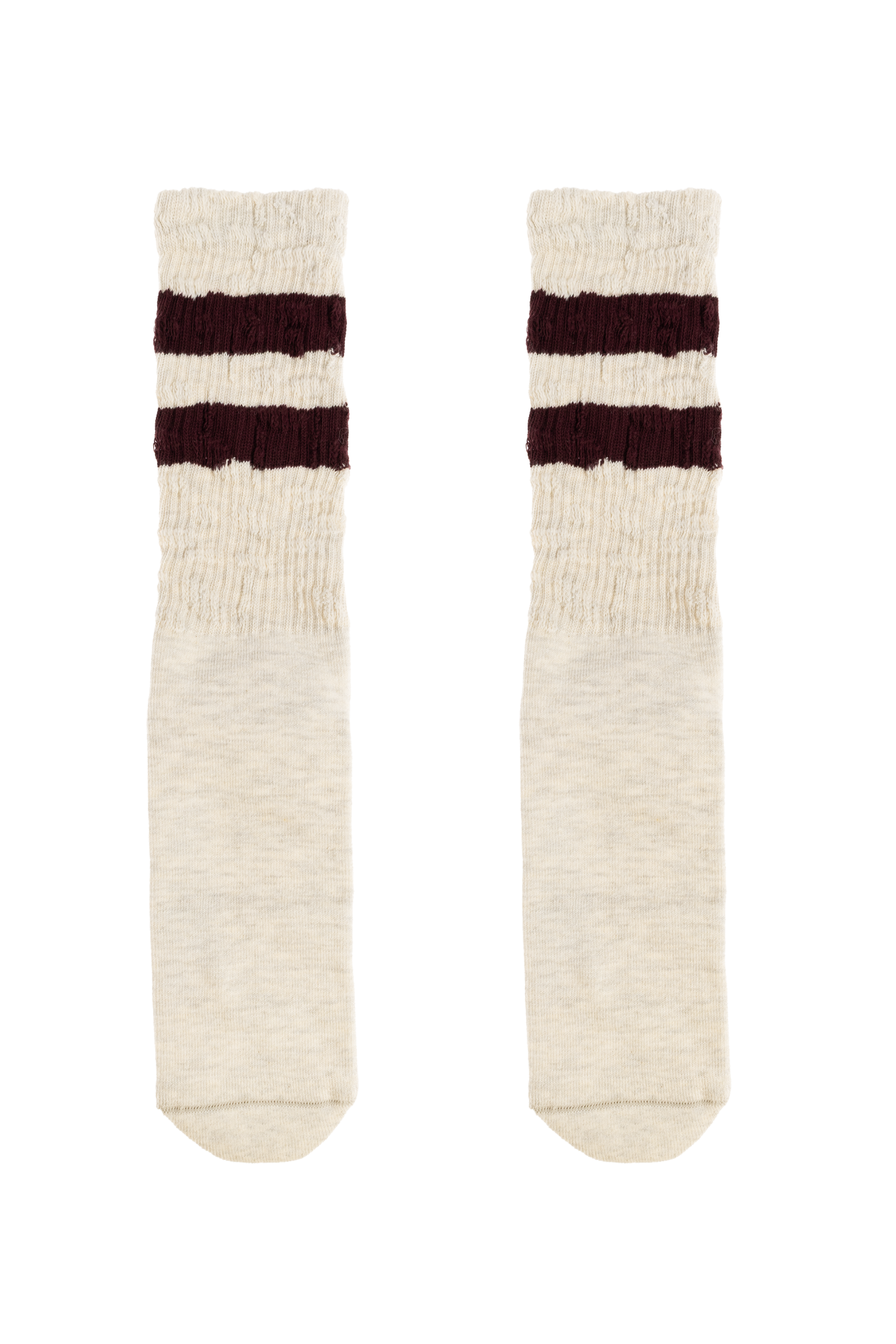 I calzini in cotone Golden Goose incarnano un'eleganza senza tempo e uno stile urban chic. Si distinguono per la meticolosa lavorazione artigianale del filato naturalmente morbido, la cui texture distintiva e raffinata garantisce comfort quotidiano. Il taglio a girocollo, il colore beige e le classiche ampie righe in una profonda tonalità bordeaux sul polpaccio li rendono una scelta discretamente espressiva che si adatta perfettamente all'estetica sofisticata delle donne contemporanee.