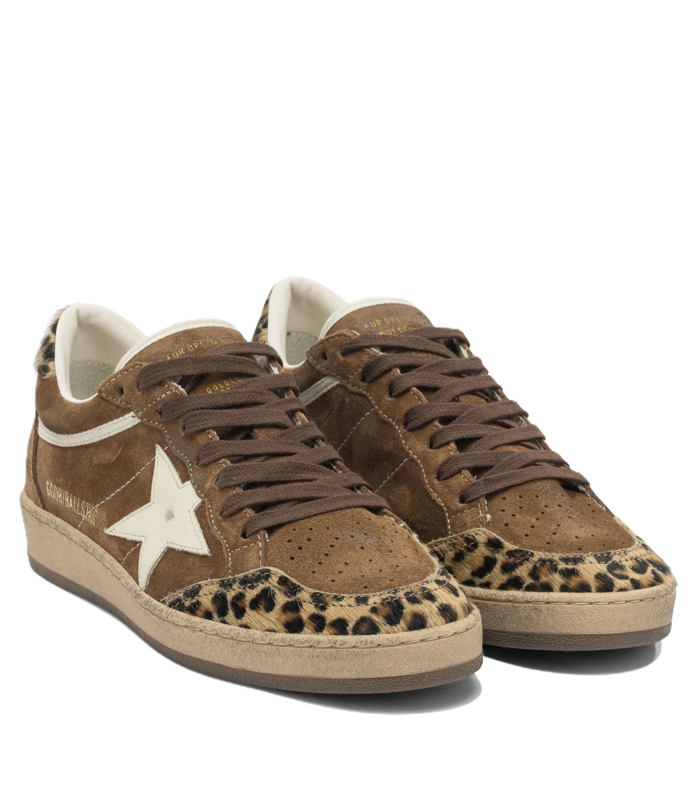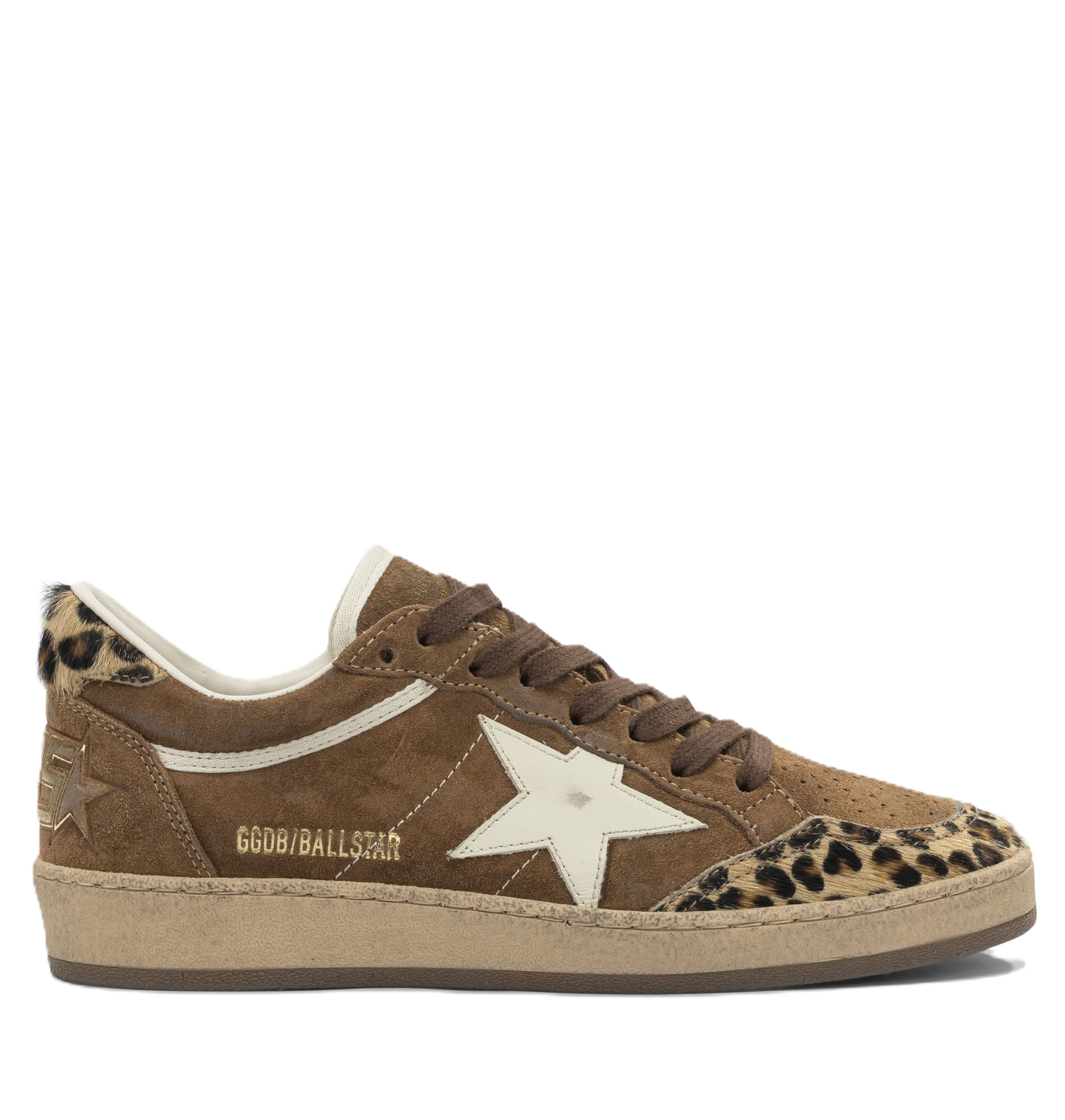 Ballstar in toni del marrone con dettagli leopard, stella in pelle bianca