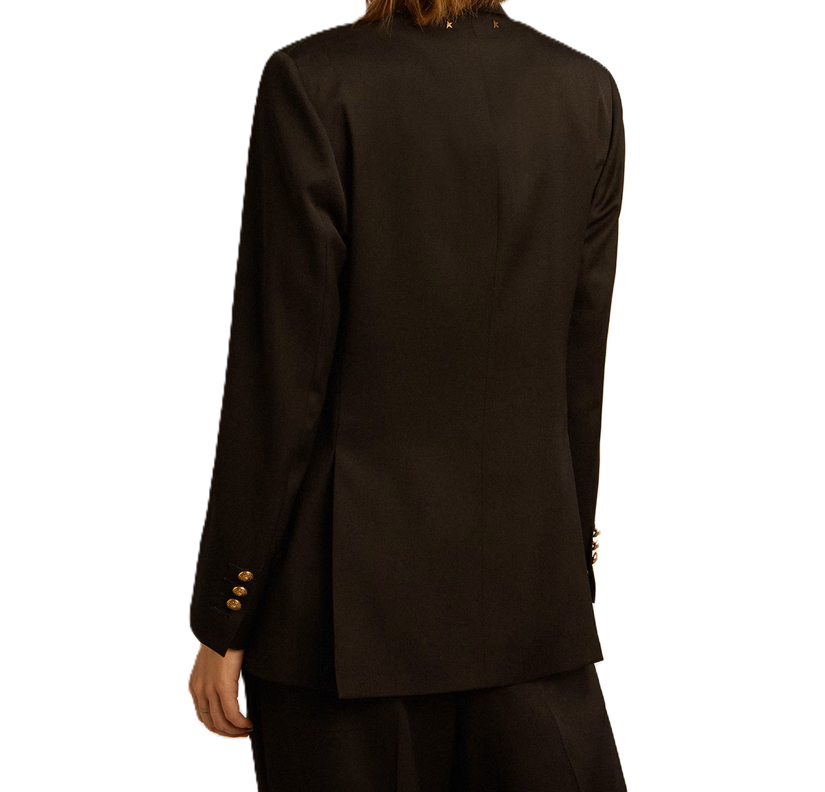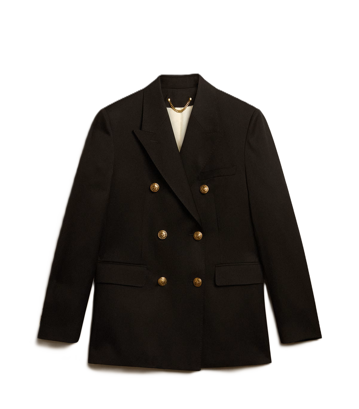Una collezione che racchiude il nostro DNA, unico e senza tempo, pensata per restare ogni giorno al tuo fianco, tra alti e bassi, sotto il sole o la pioggia. Di colore nero, questo blazer in gabardine di lana da donna doppiopetto dal fit regular è caratterizzato dalla chiusura a bottoni araldici di colore oro.