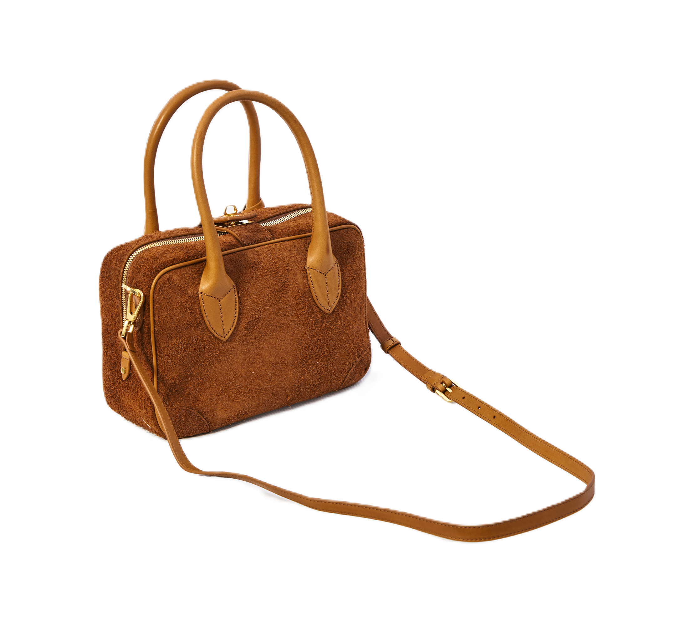 Borsa in pelle con effetto pelliccia furry di colore cuoio. Presenta manici doppi fissi, portachiavi rimovibile, tracolla regolabile e rimovibile, chiusura con girello e hardware di colore oro, chiusura con zip a doppio cursore, uno scomparto principale con una tasca con zip e tre tasche piatte, piedini e finiture in metallo color oro. Dustbag inclusa.