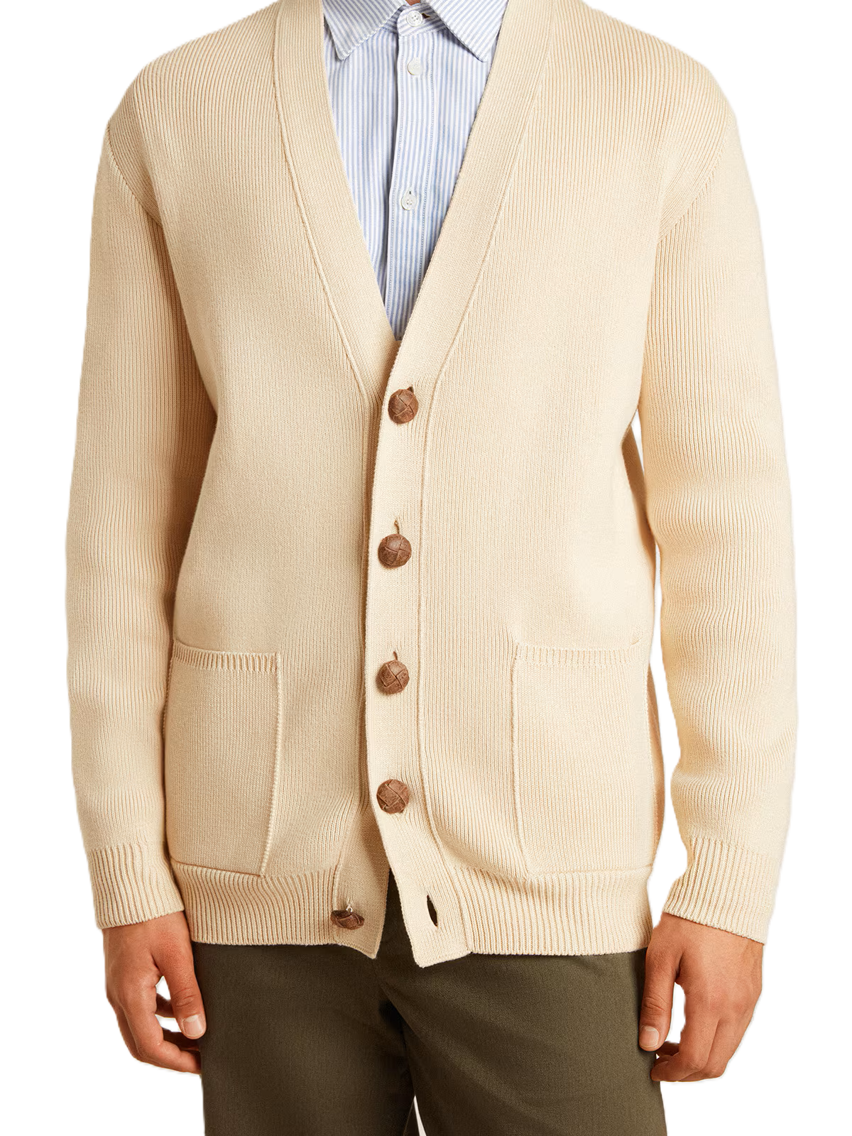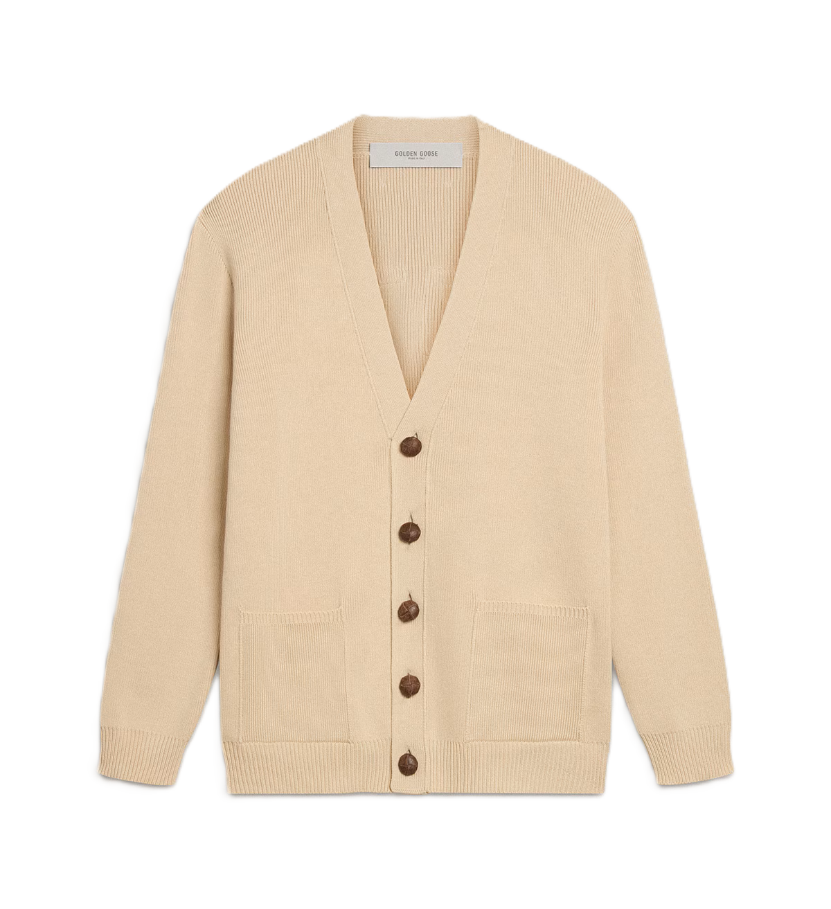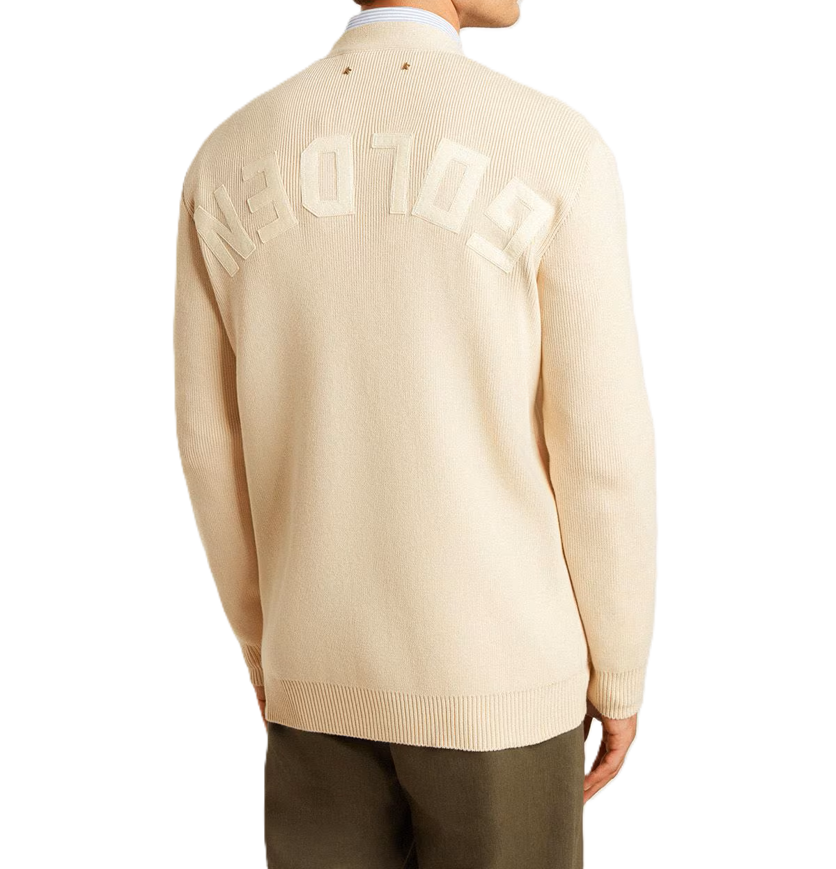 Golden Goose Cardigan da uomo di colore beige con scritta 'Golden' sul retro