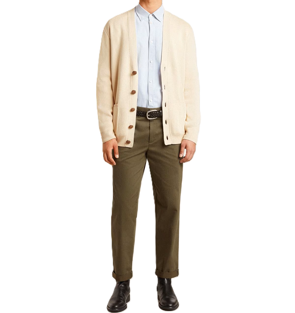 Ispirata all'energia degli anni Novanta, la nostra nuova collezione celebra l'energia pulsante della musica e la forza illimitata dei sogni. In cotone organico color beige, questo cardigan è caratterizzato dalla scritta a rovescio 'Golden' bianca sulla schiena e dalla chiusura con cinque bottoni marroni.