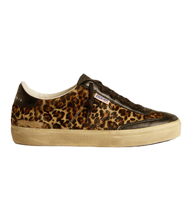 Golden Goose sneakers in cavallino fantasia animalier, lacci neri, dettagli in pelle, logo sul tallone, suola in gomma. 100% cavallino. Made in Italy