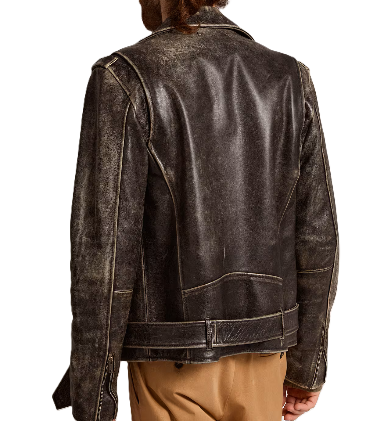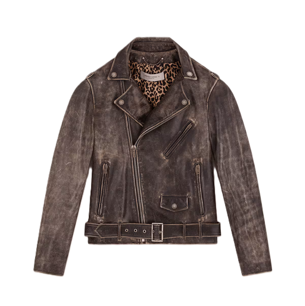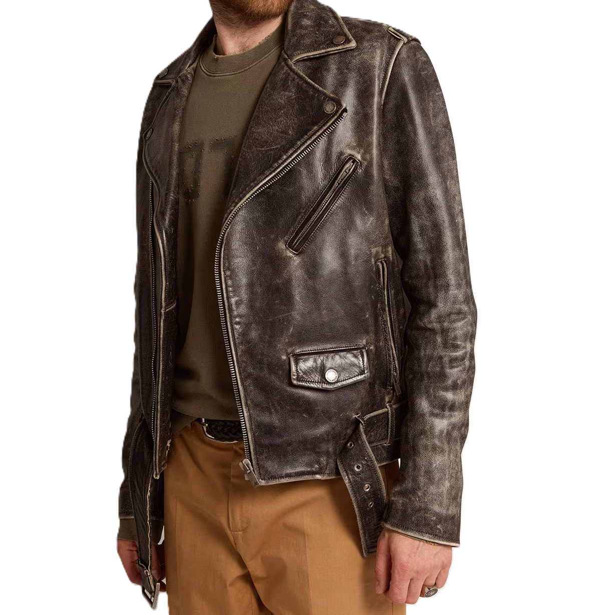 Golden Goose Chiodo in pelle da uomo dal trattamento distressed