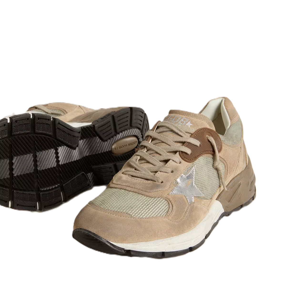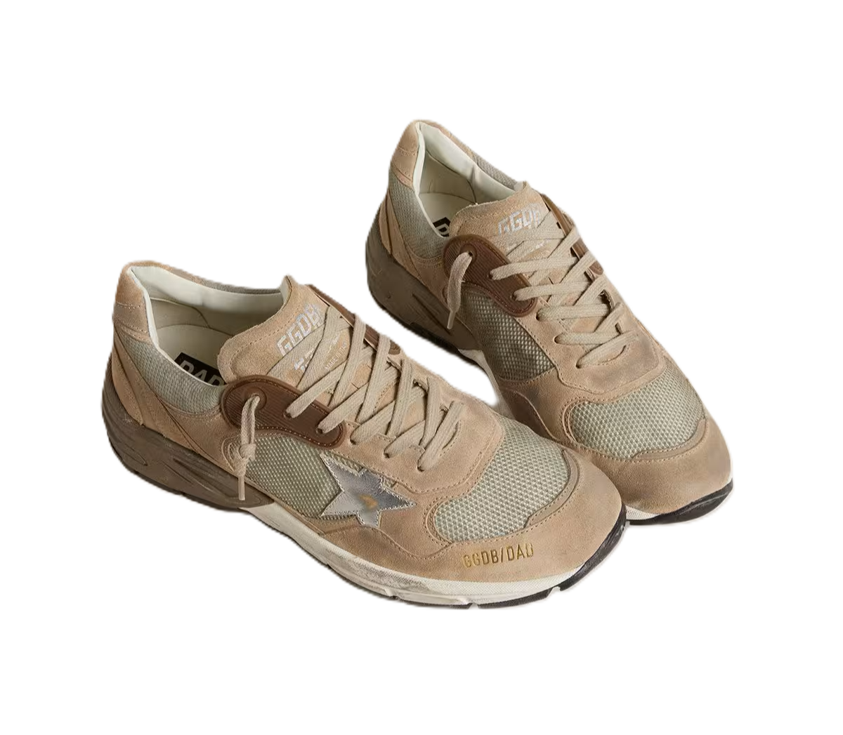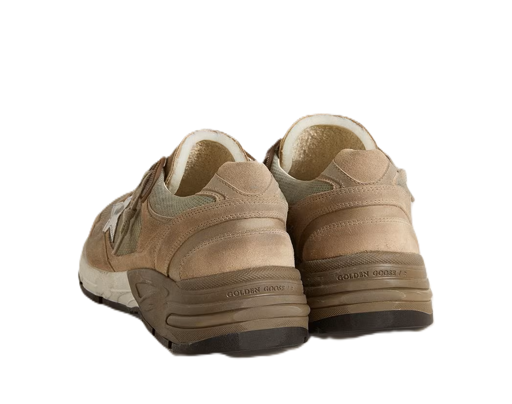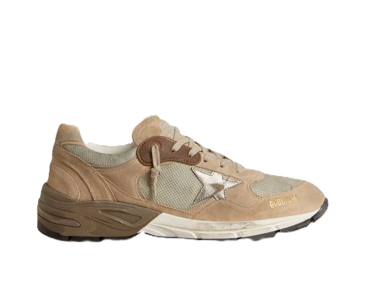 Golden Goose Dad-Star Uomo in rete e suede beige con stella in pelle argento