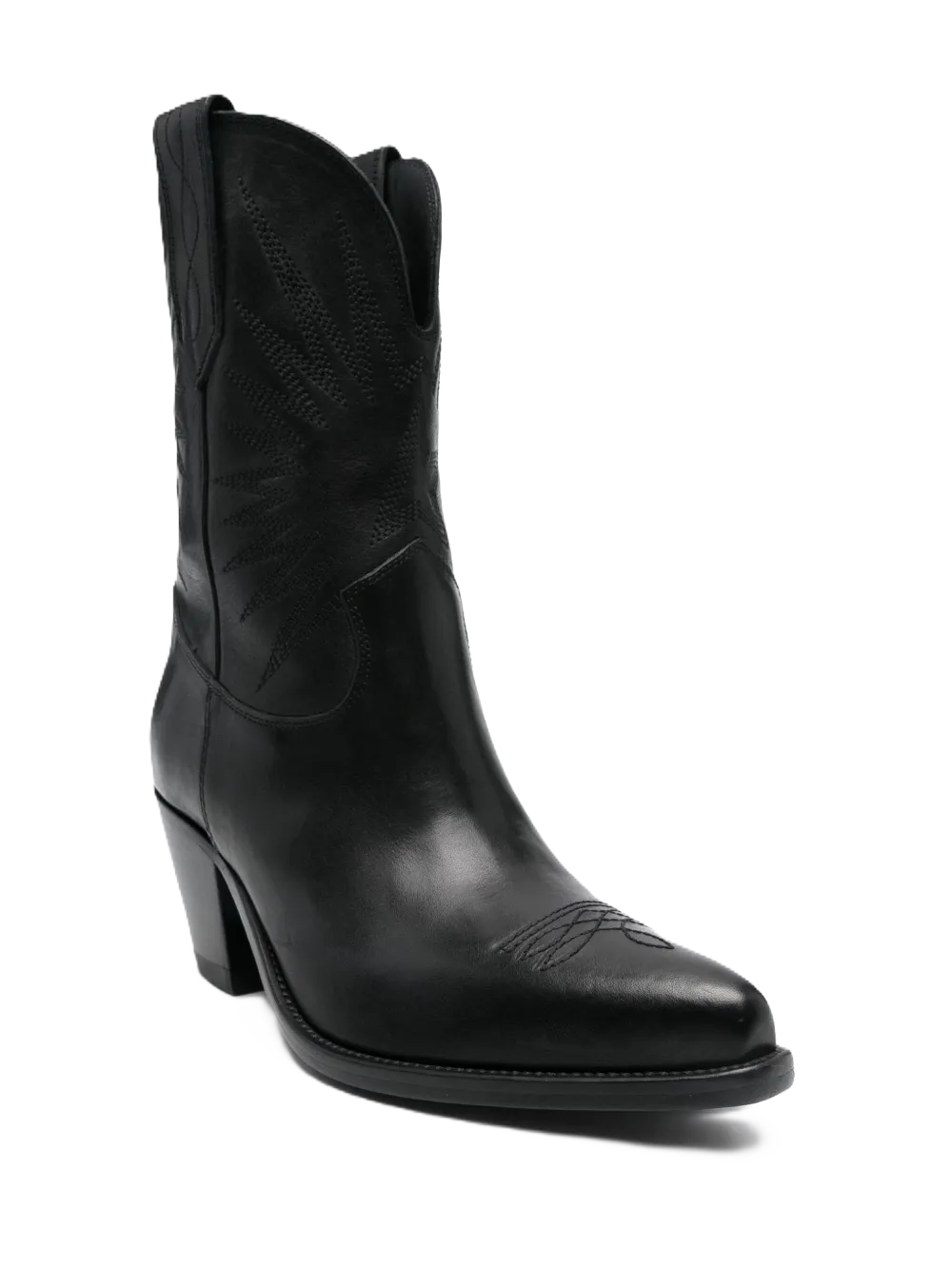 Golden Goose Low Wish Star Boots neri in pelle di vitello, grana liscia, stile western, dettagli con profili, tacco cubano.