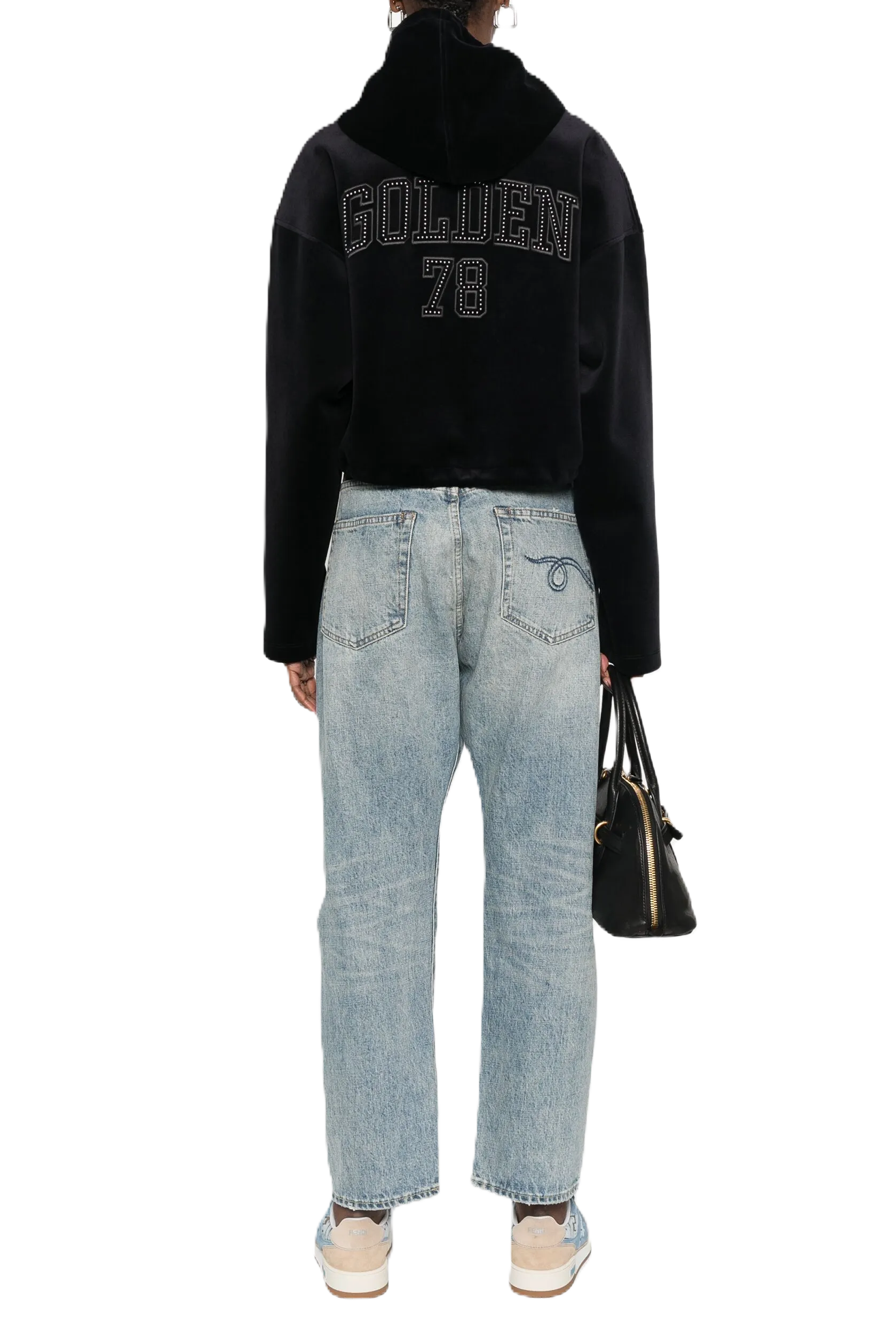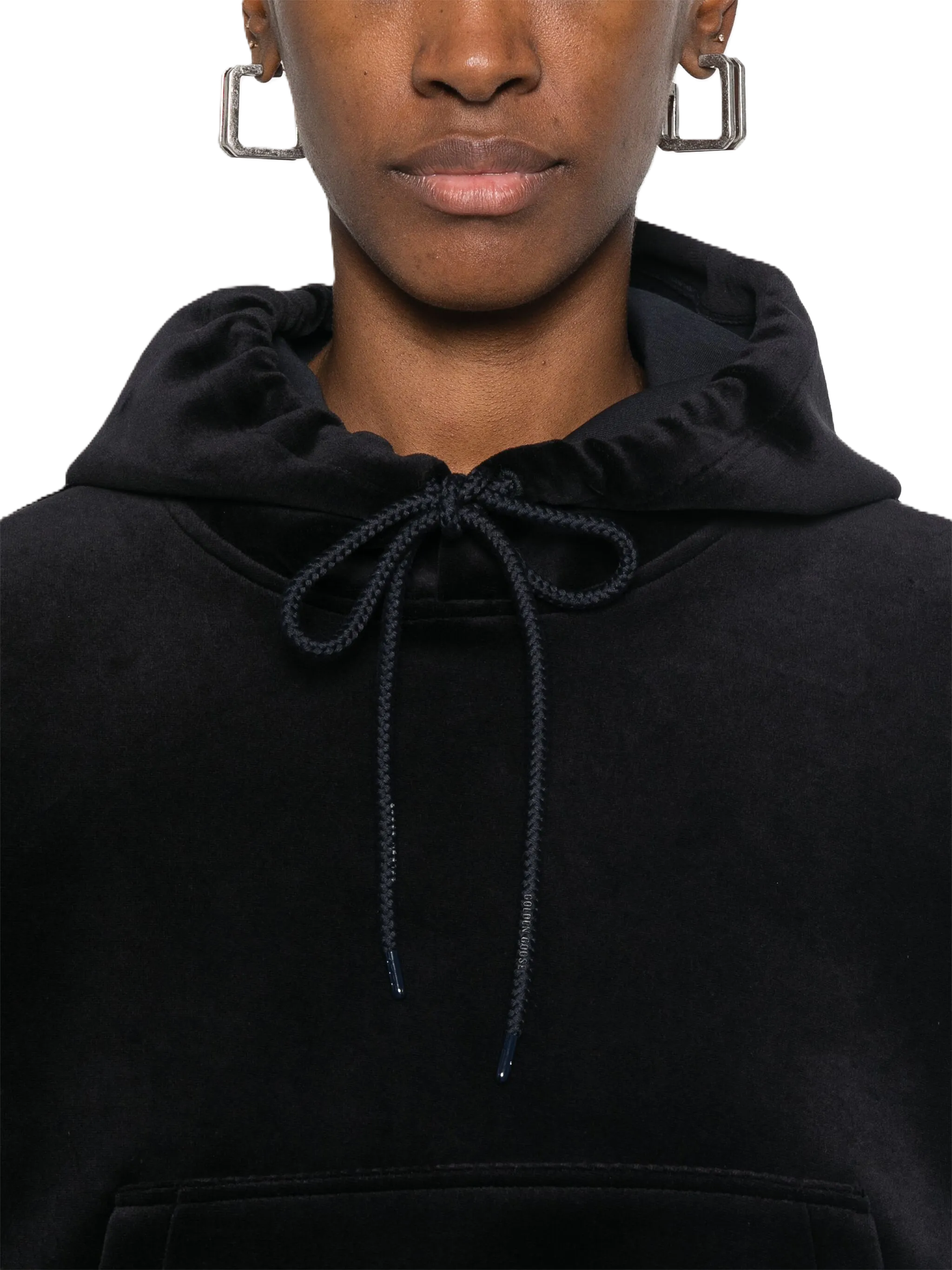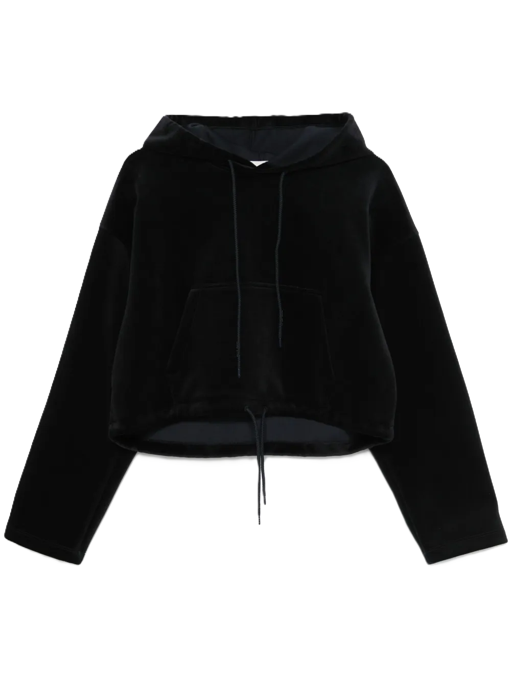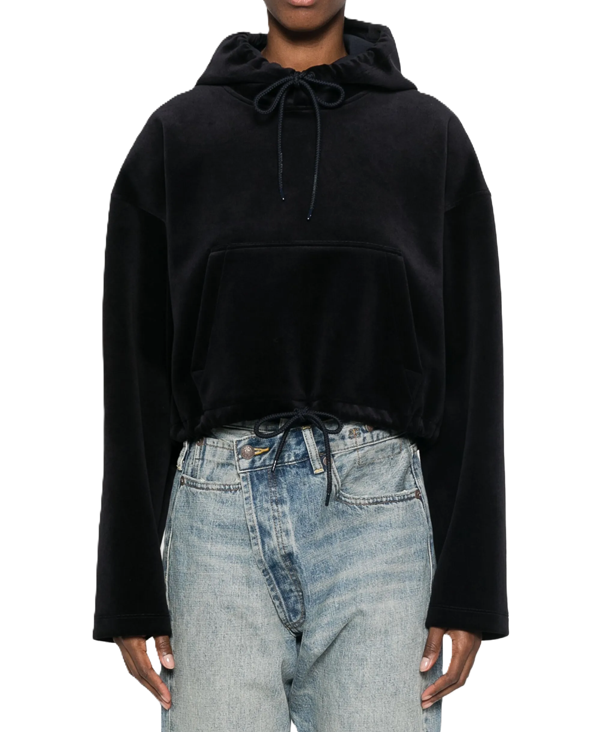 Felpa boxy in jersey ciniglia blu navy, tasca frontale a marsupio, orlo con coulisse.