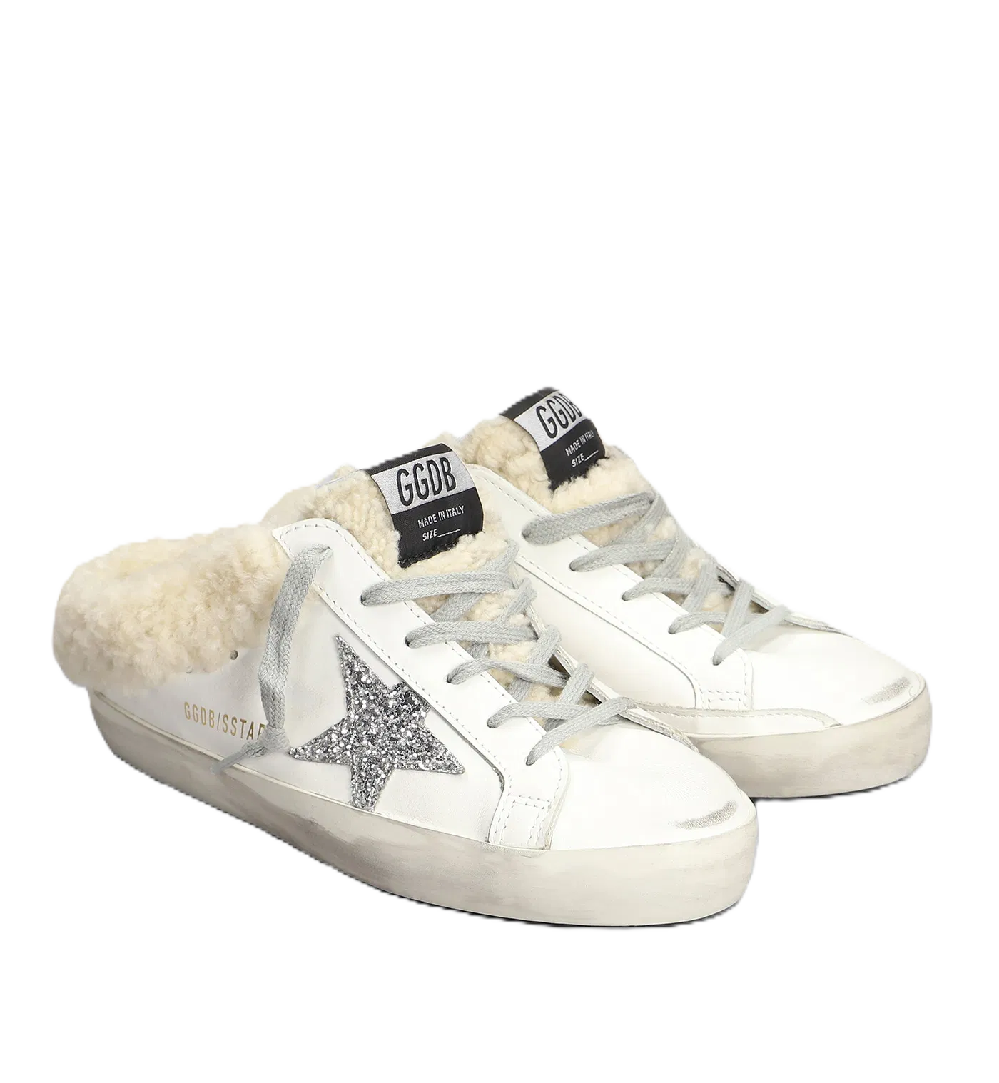 Golden Goose Mules basse Superstar in pelle con pelliccia