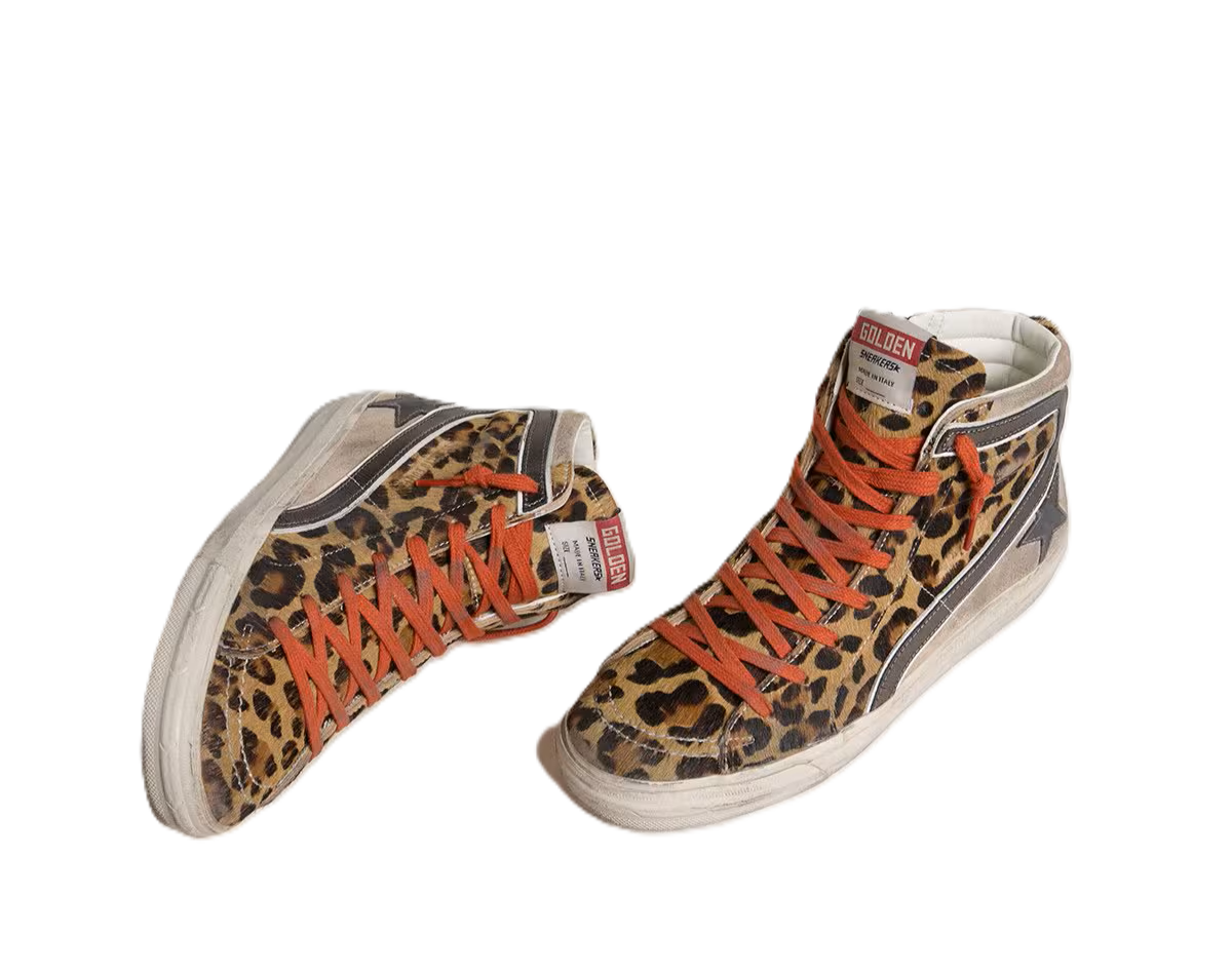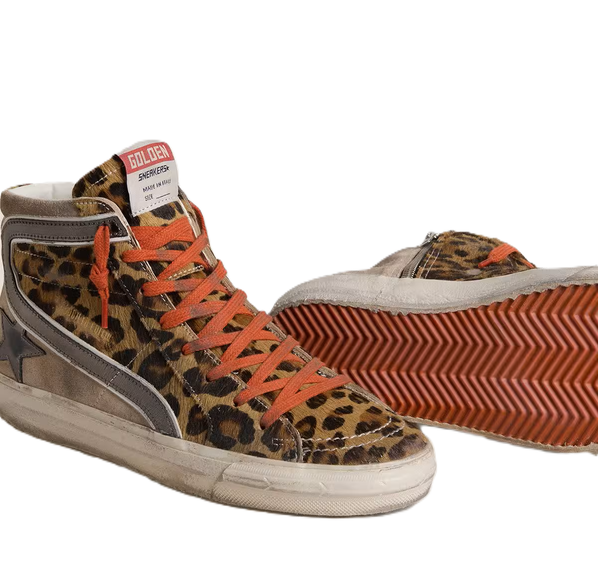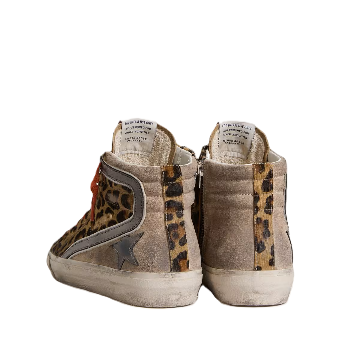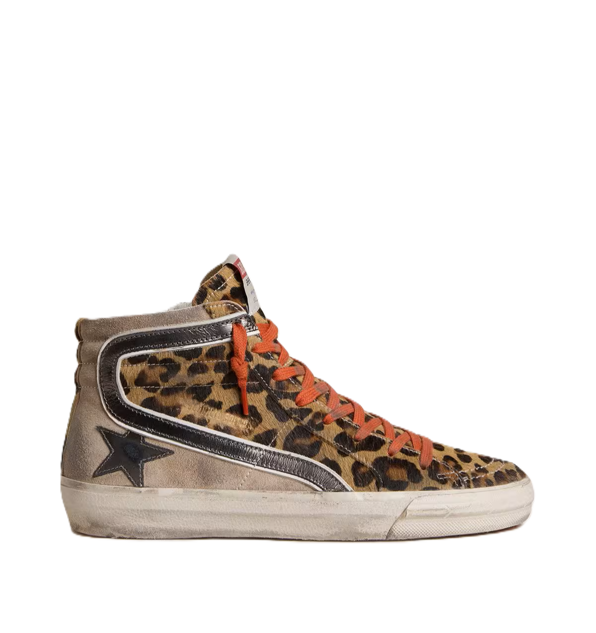 Golden Goose Slide Donna LTD in cavallino leopardato con stella e virgola in pelle laminata