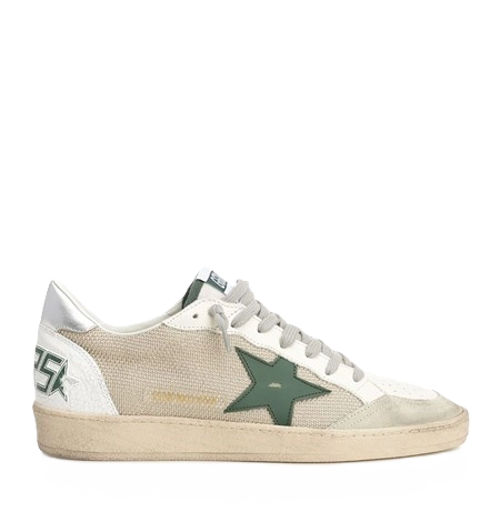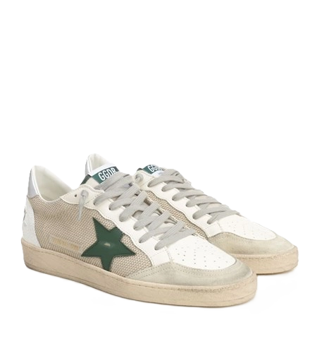 Sneaker in tessuto tecnico e pelle scamosciata con stella in pelle verde e tallone in pelle laminata color argento