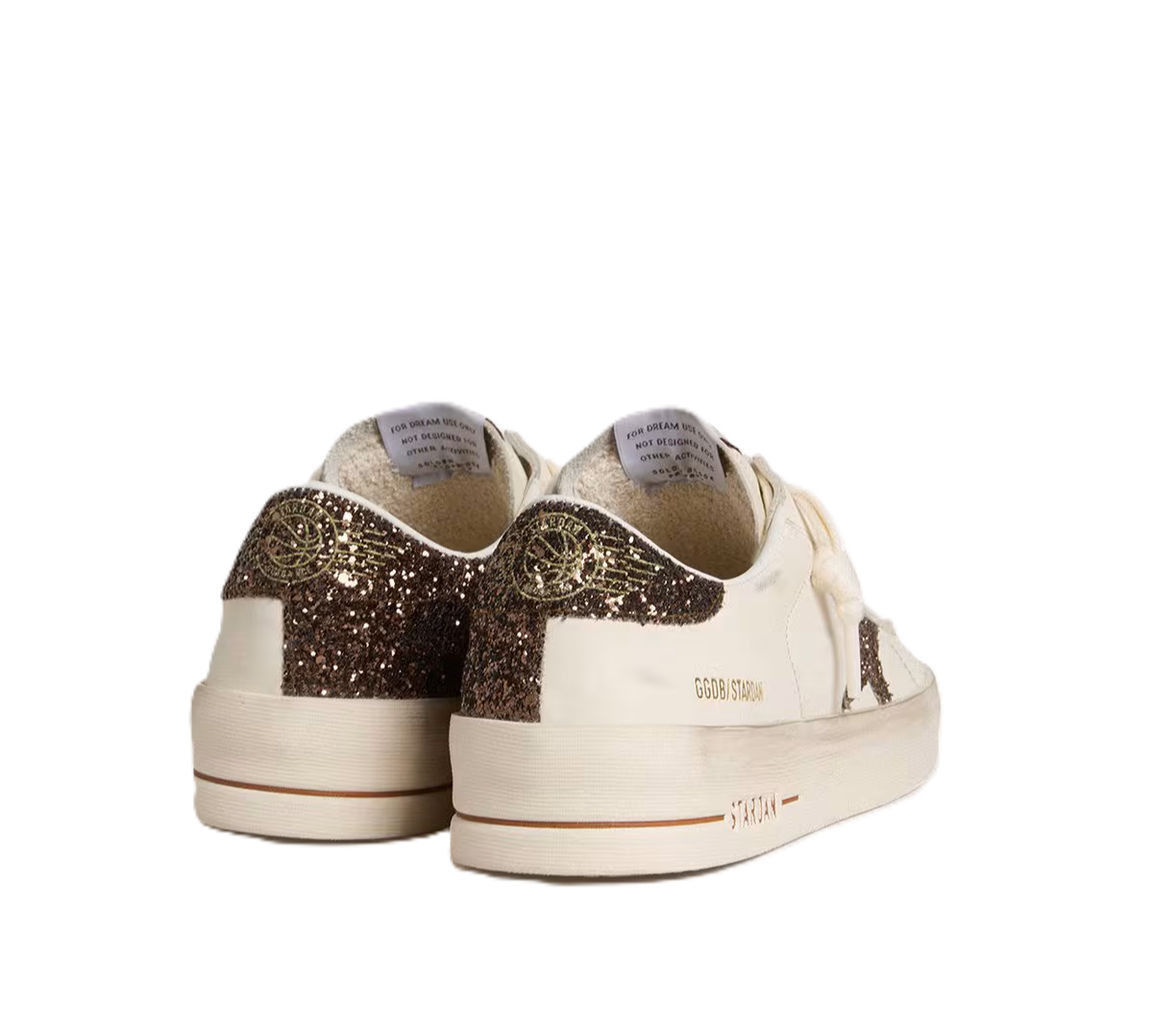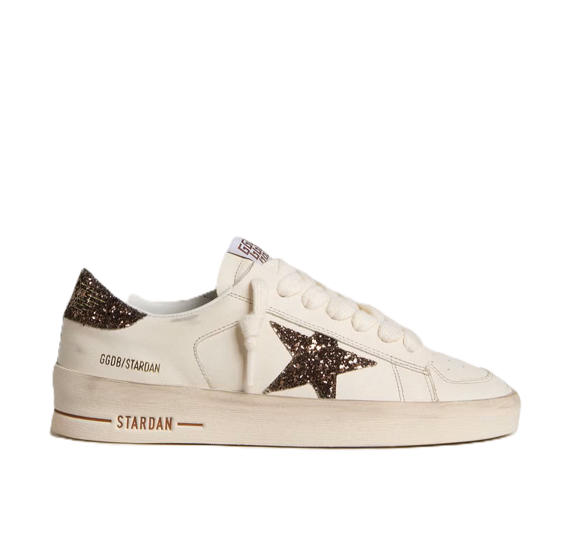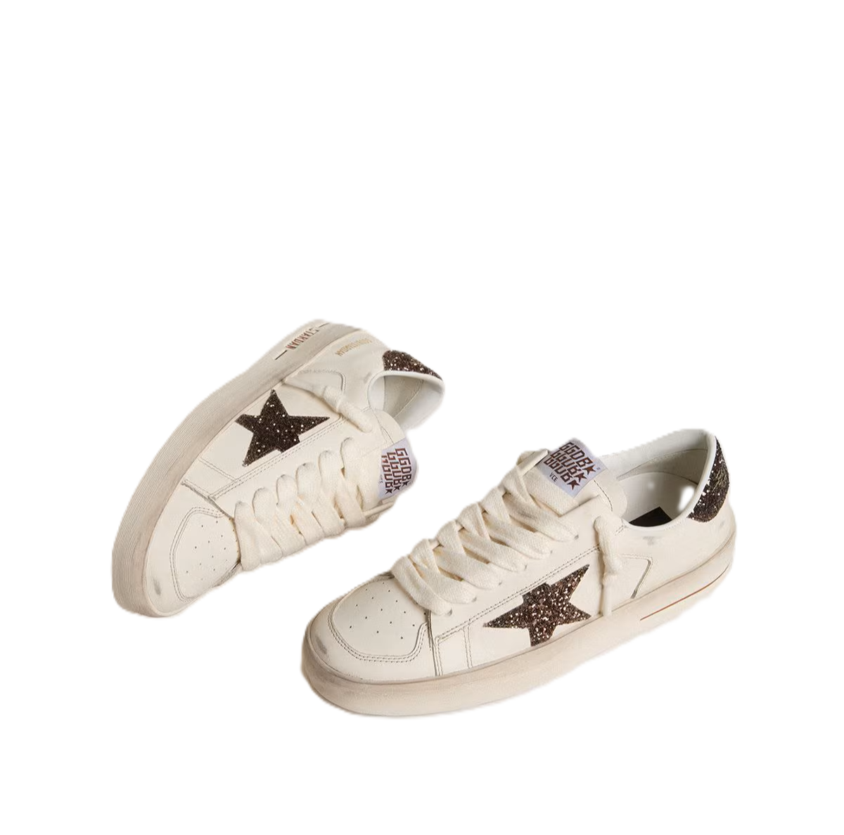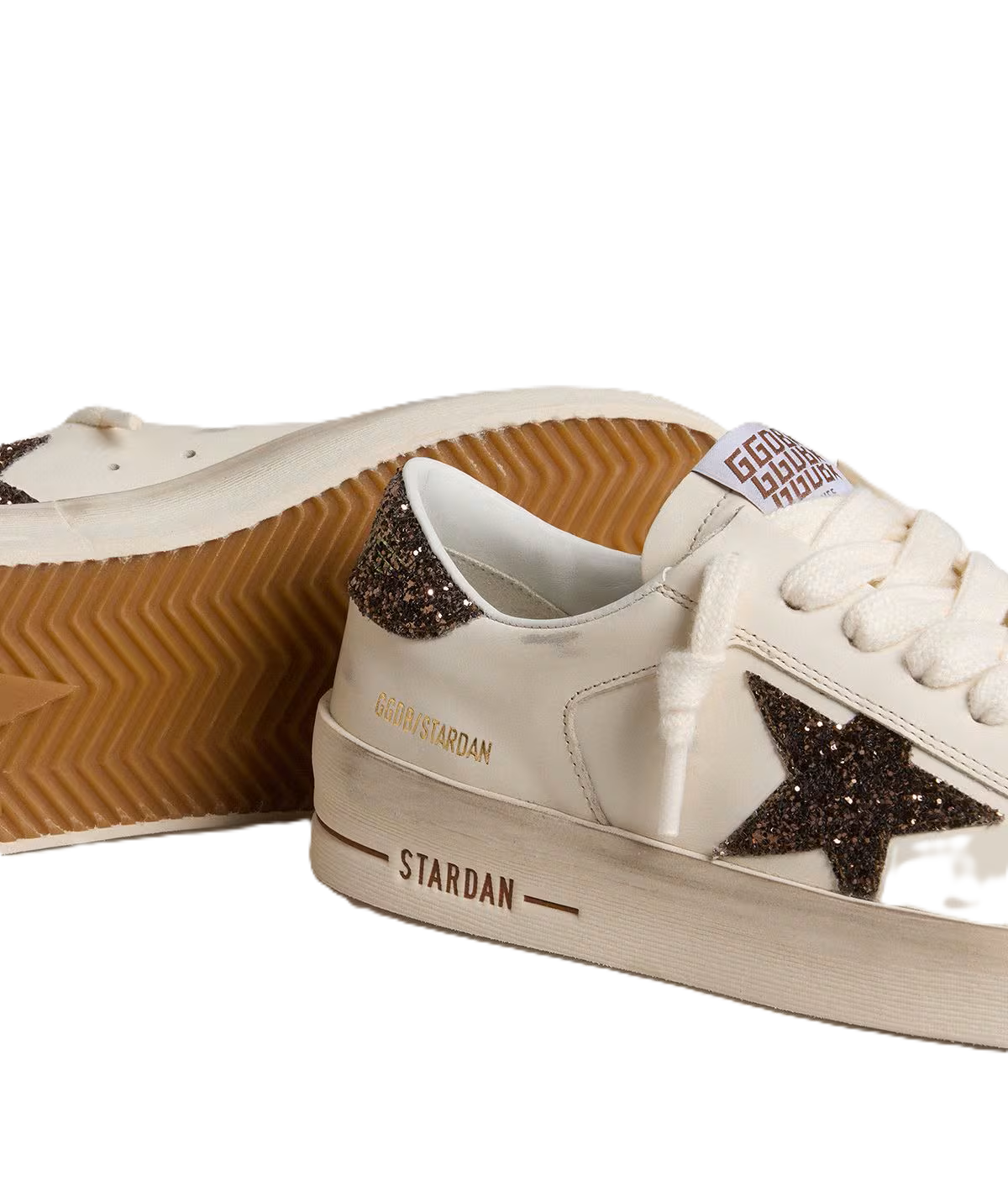 Golden Goose Stardan Donna in pelle bianca con stella e talloncino in glitter marroni