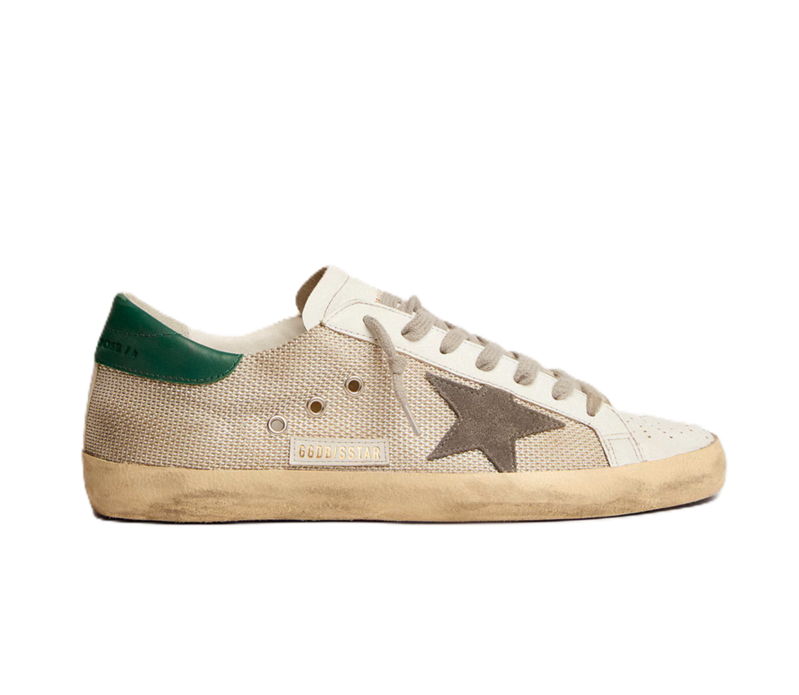 Un'icona senza tempo, ma in continua evoluzione. In Golden, amiamo prendere i nostri classici e reinterpretarli costantemente, sempre sotto una luce diversa. Caratterizzato dalla linguetta e dagli inserti in pelle bianca, questo modello si distingue per la tomaia in rete color argento chiaro con la stella in suede grigio e il talloncino in pelle verde. Come tocco finale, i lacci color grigio gh