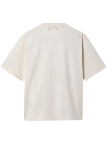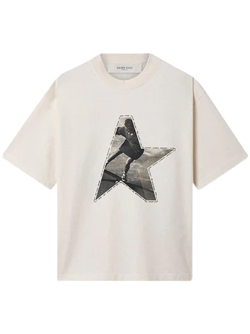 Questa t-shirt con grafica Golden Goose offre uno stile autentico. Scopri il massimo comfort con la sua esclusiva stampa a stella, caratterizzata da un'inconfondibile immagine vintage in bianco e nero. Questa versatile t-shirt offre un'estetica casual raffinata per i guardaroba moderni.