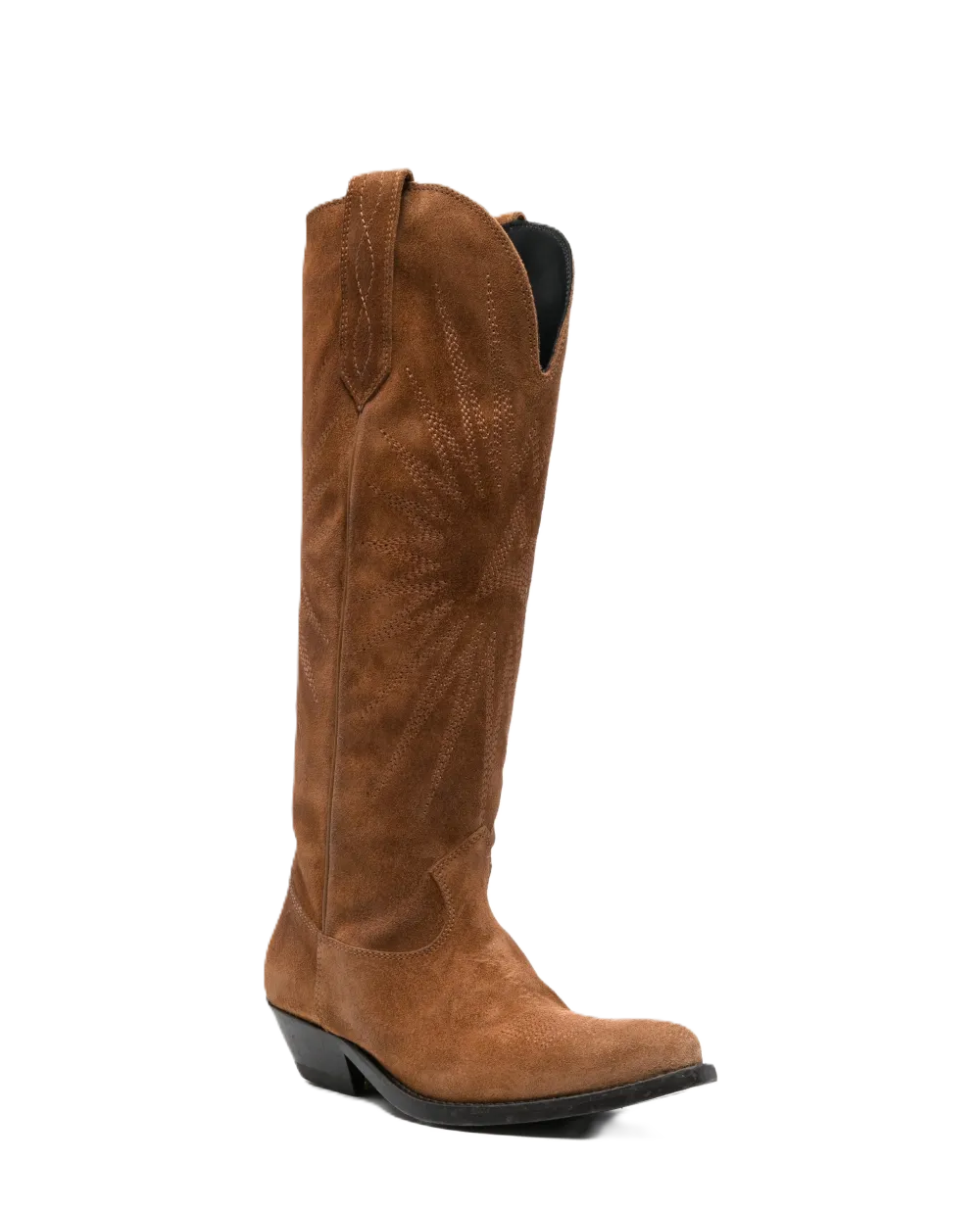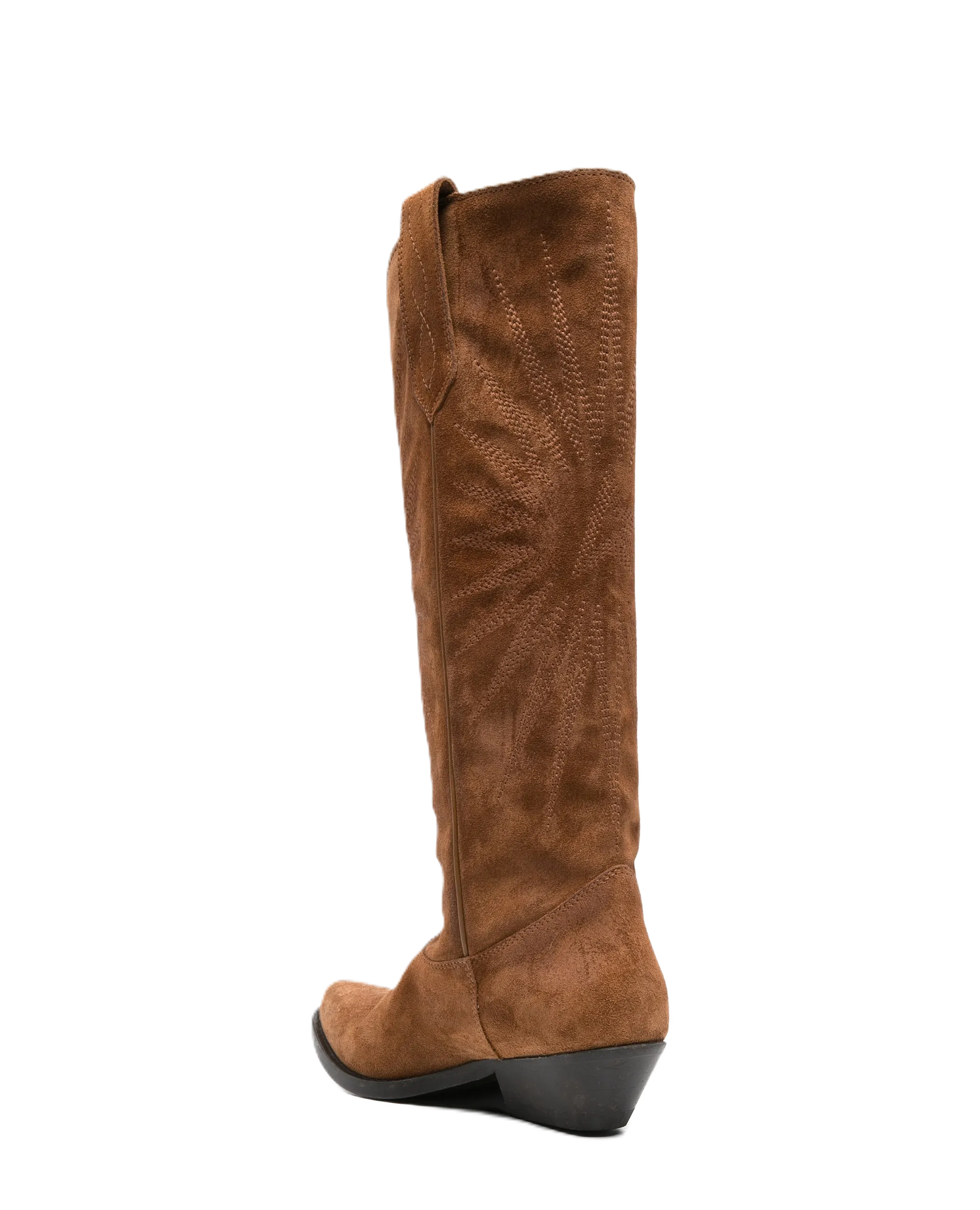 Stivale marrone con motivo con cuciturem, design a punta, pull on, tacco basso, pelle scamosciata