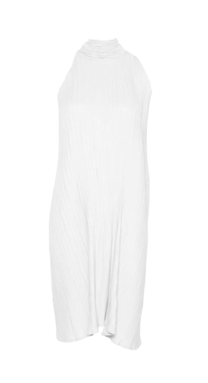 L'abito Wavy halter di Gongdid Design è un capo raffinato e versatile, caratterizzato da uno scollo all'americana e una silhouette senza maniche. Il design ondulato, arricchito da un tocco vintage, presenta una balza che scende fino all'orlo e una lunghezza pensata per coprire leggermente i fianchi, combinando leggerezza, eleganza e versatilità in un capo distintivo. Colore: bianco